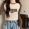 Real-Price Real-Life Shot #Black American Retro 인쇄 분쇄 봄과 가을 바닥 셔츠에서 여성을위한 긴팔 티셔츠