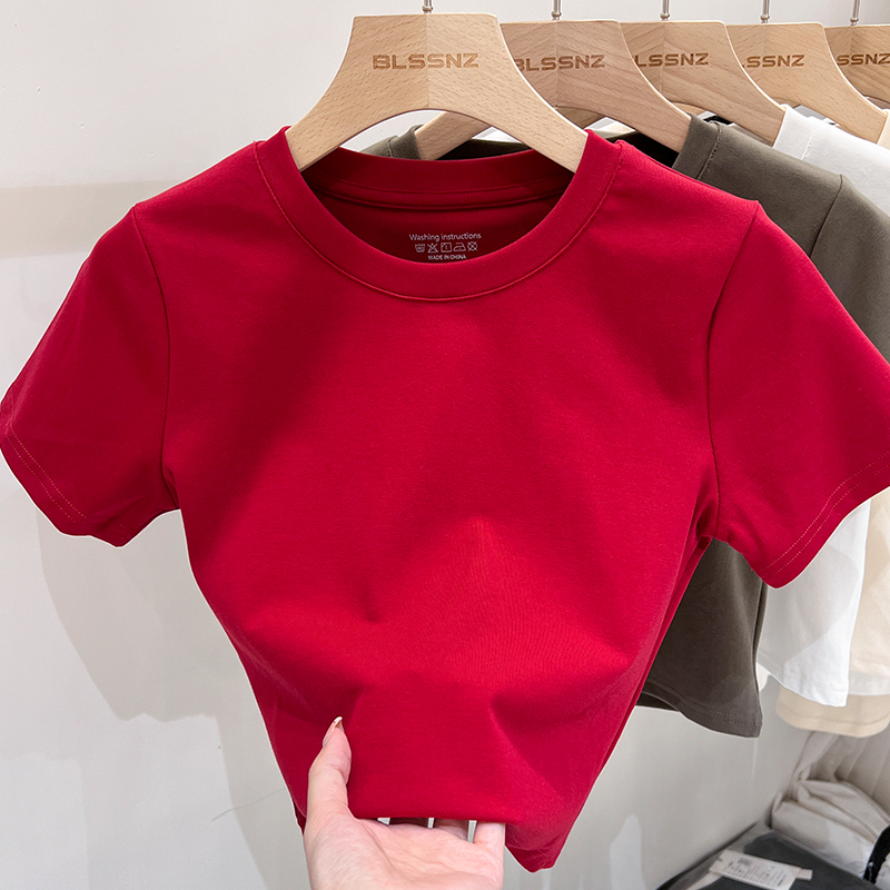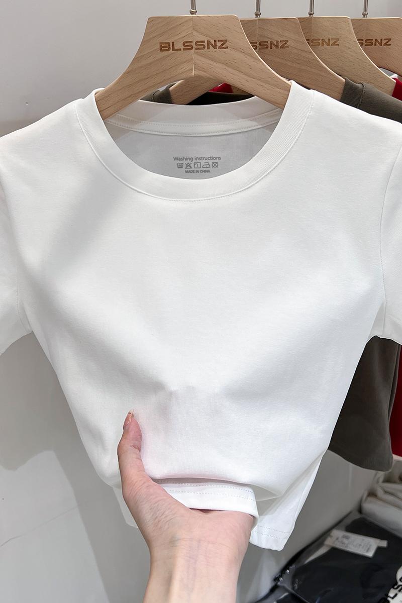진짜 가격 실제 샷 #화이트면 앞쪽 어깨 어깨 단락 티셔츠 여름에 여성을위한 작은 티셔츠 슬림 한 짧은 여름