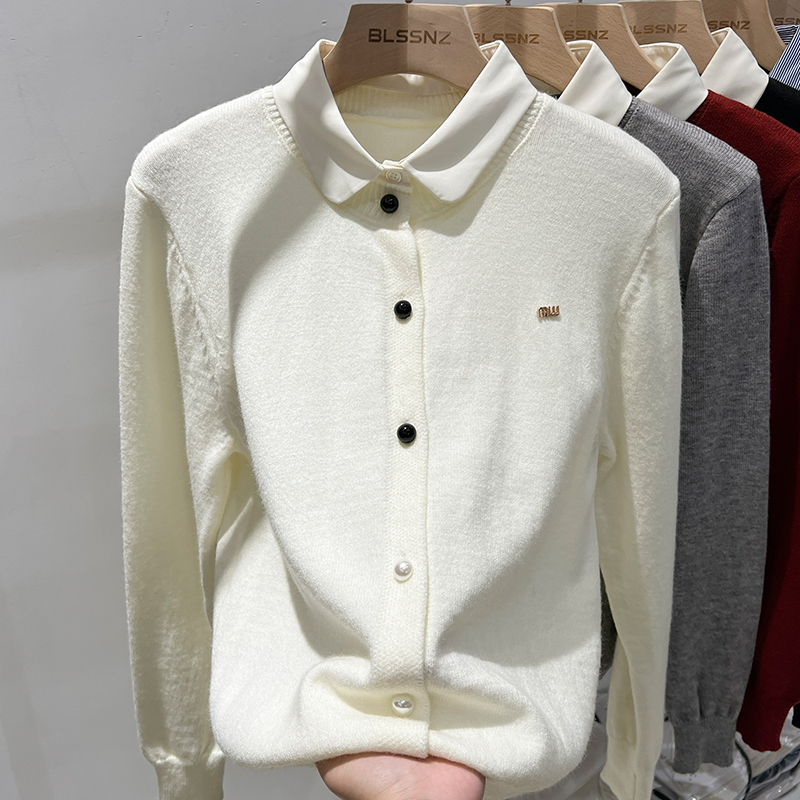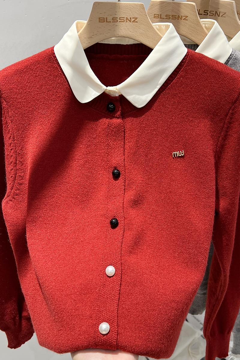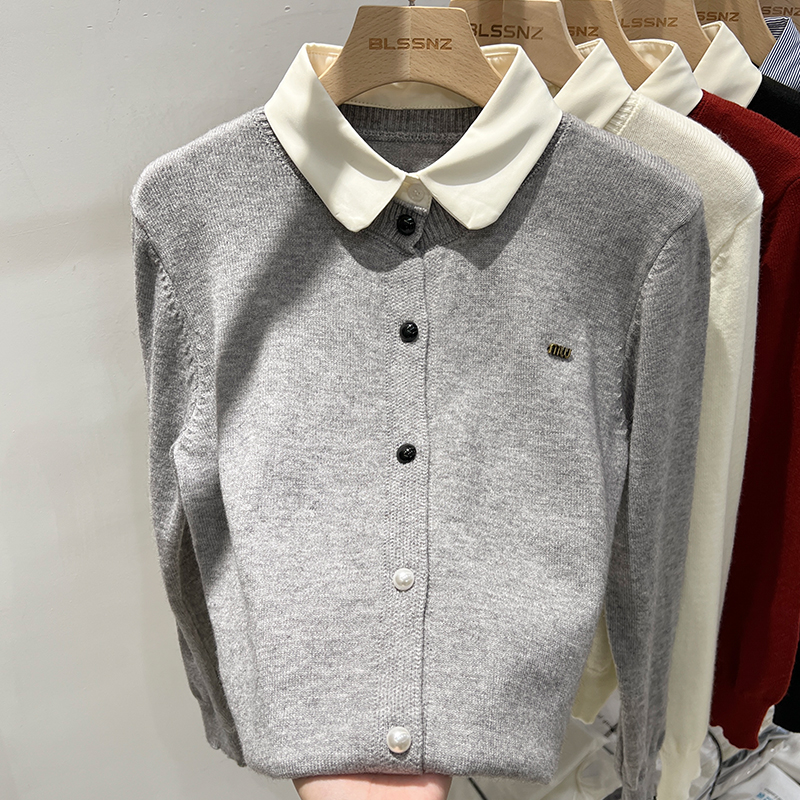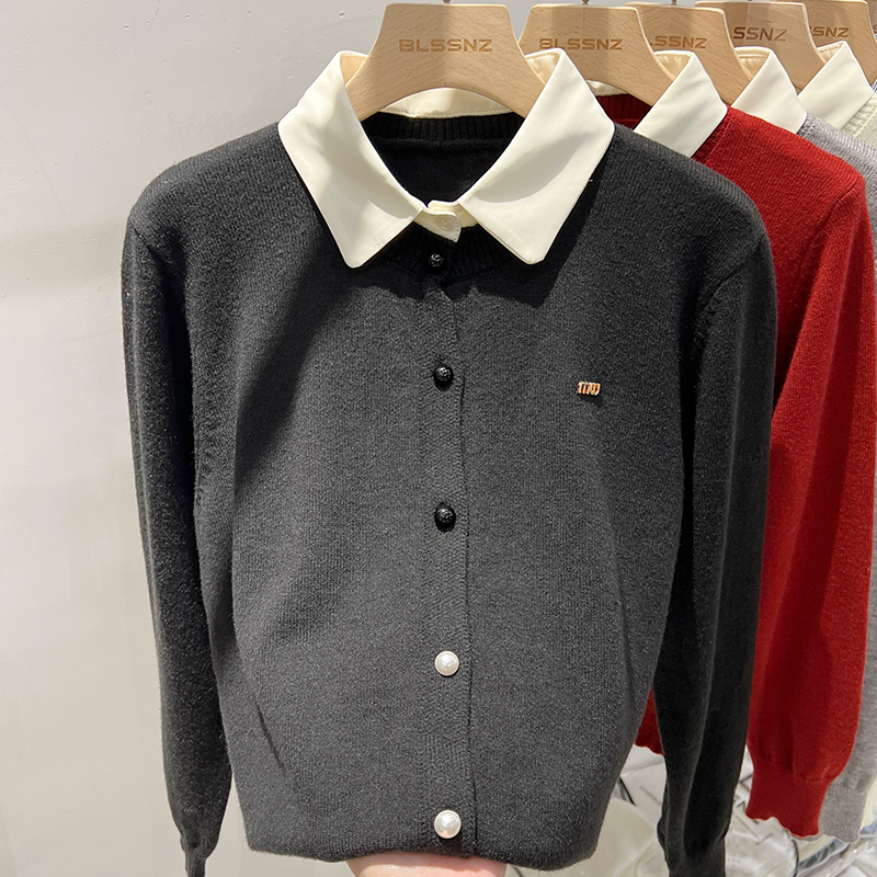 실제 가격 샷 #college 스타일 폴로 칼라 니트 카디건 봄에 여성을위한 작은 가짜 2 피스 스웨터 재킷 탑
