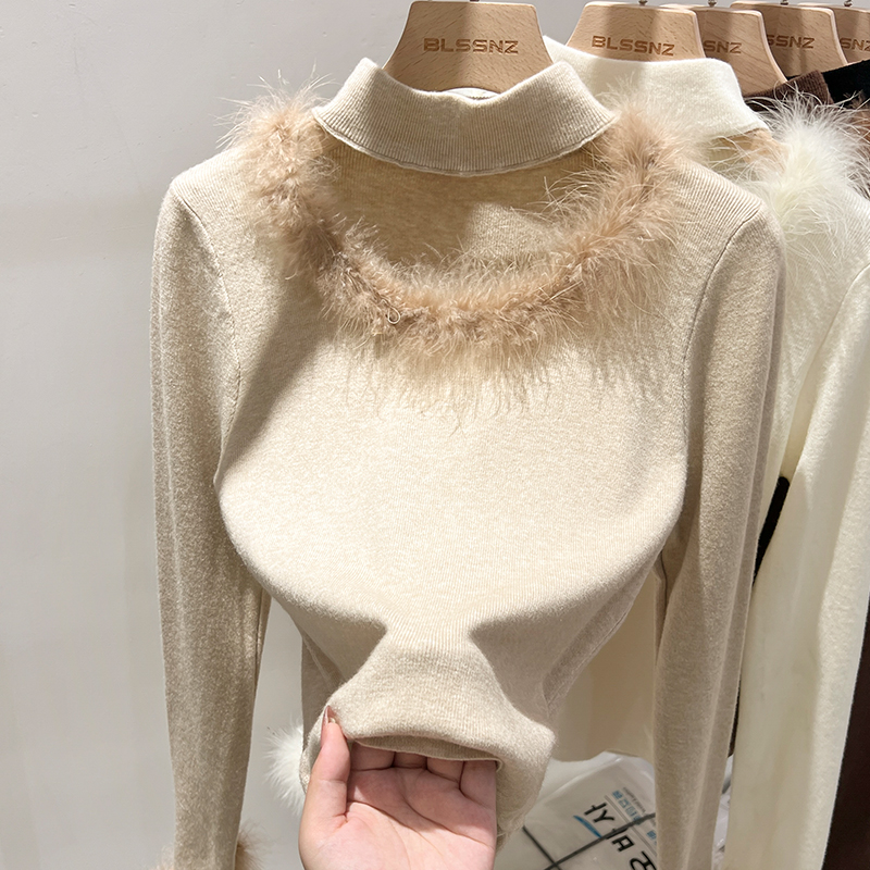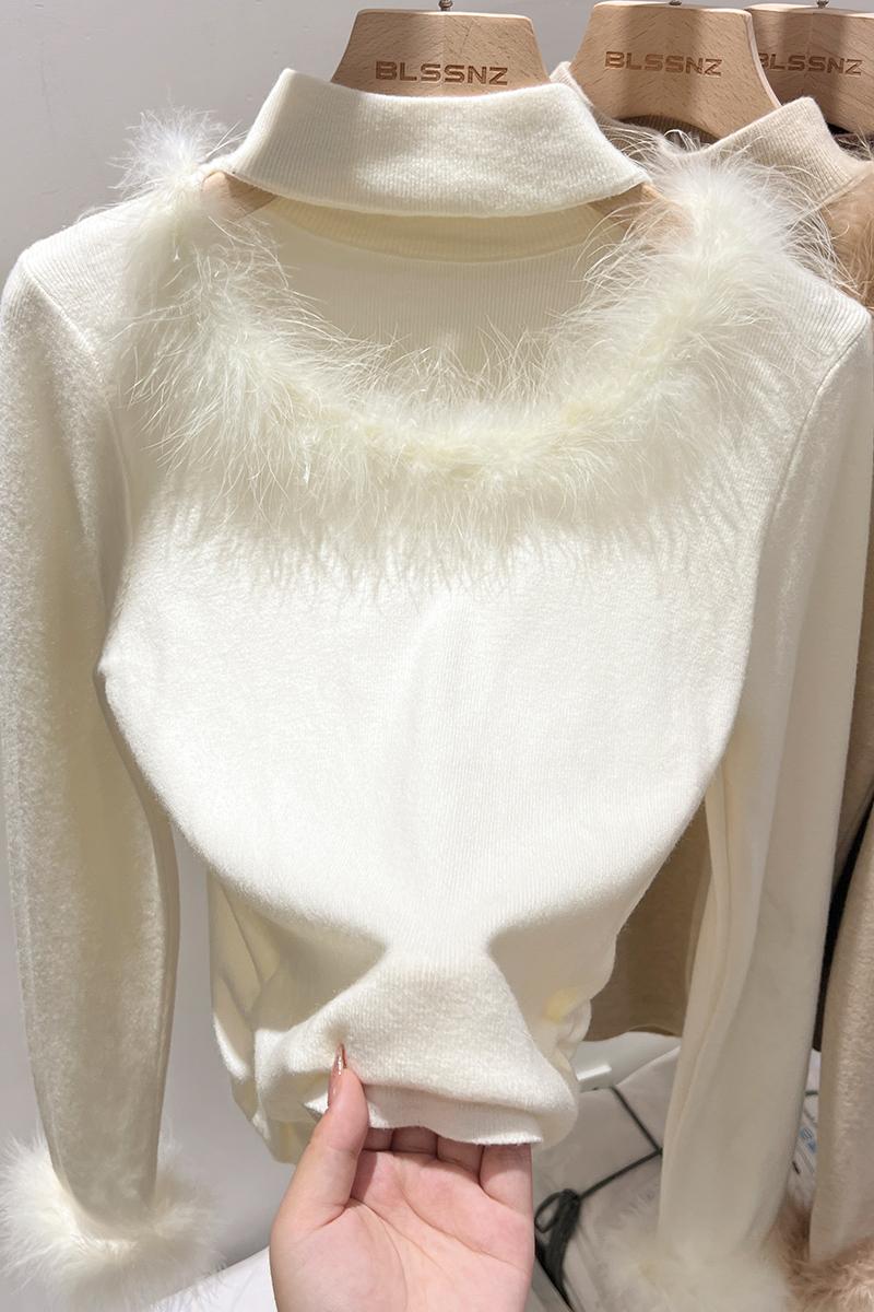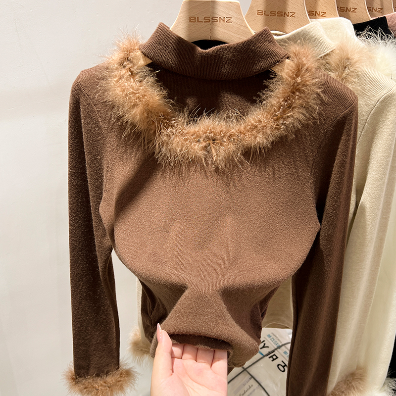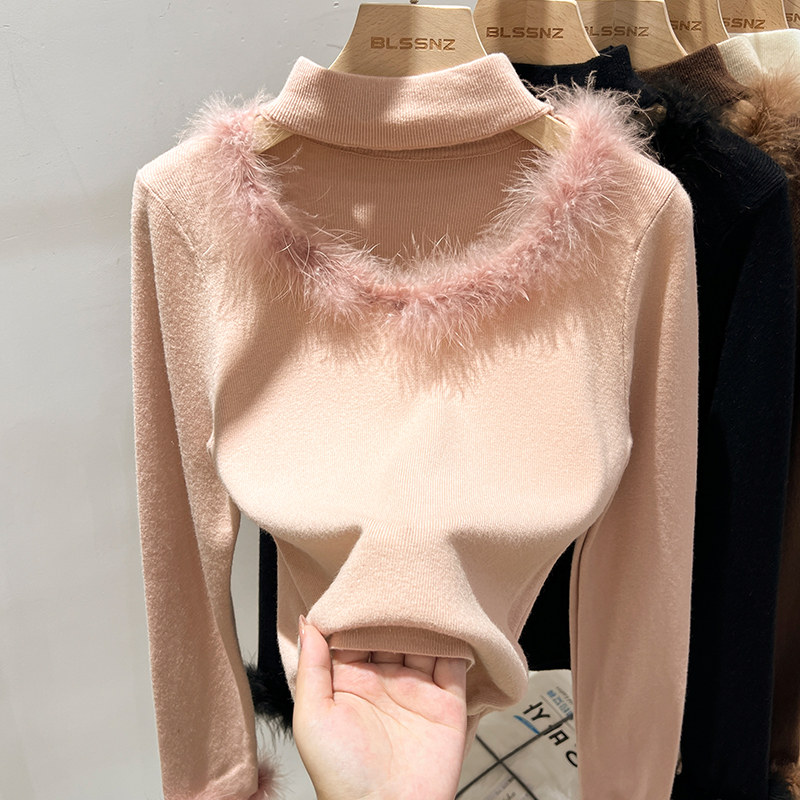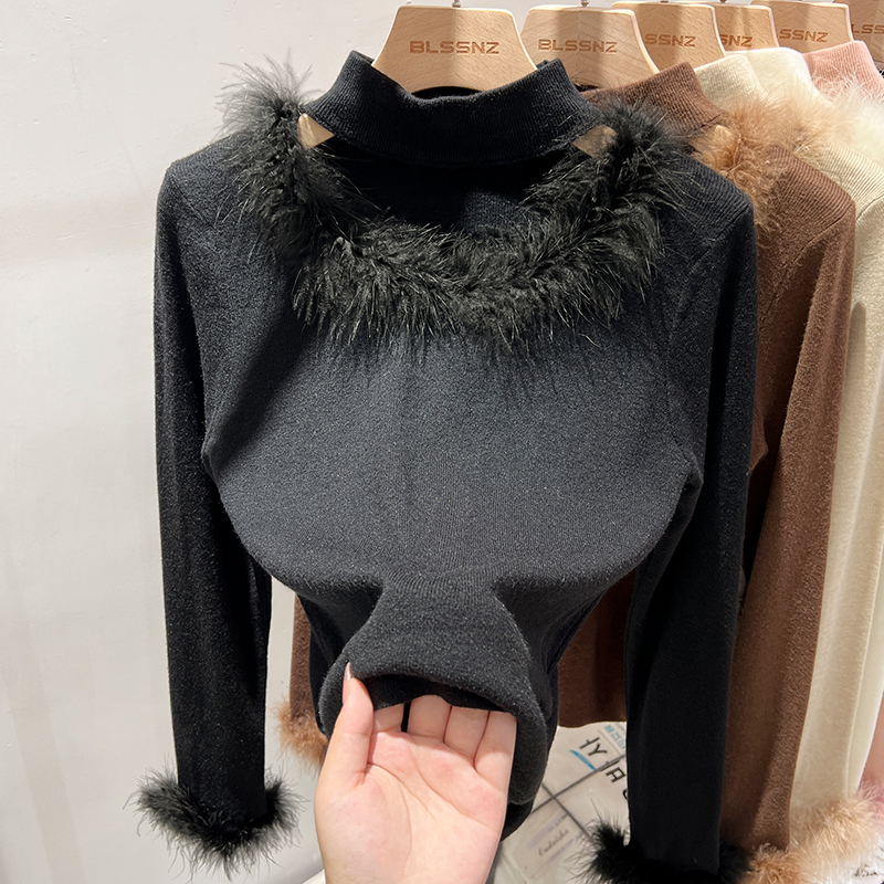 가을과 겨울 고급 불규칙한 두꺼운 스웨터 탑에서 여성을위한 실제 가격 실시간 모피 홀터 넥 중공 스웨터