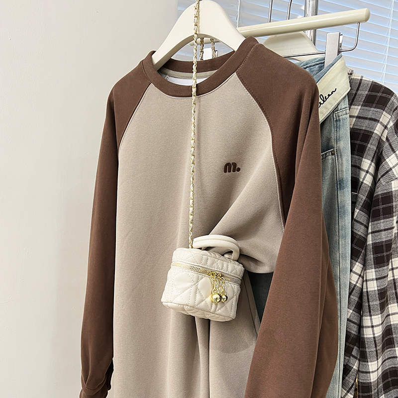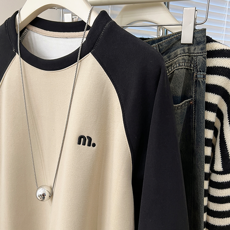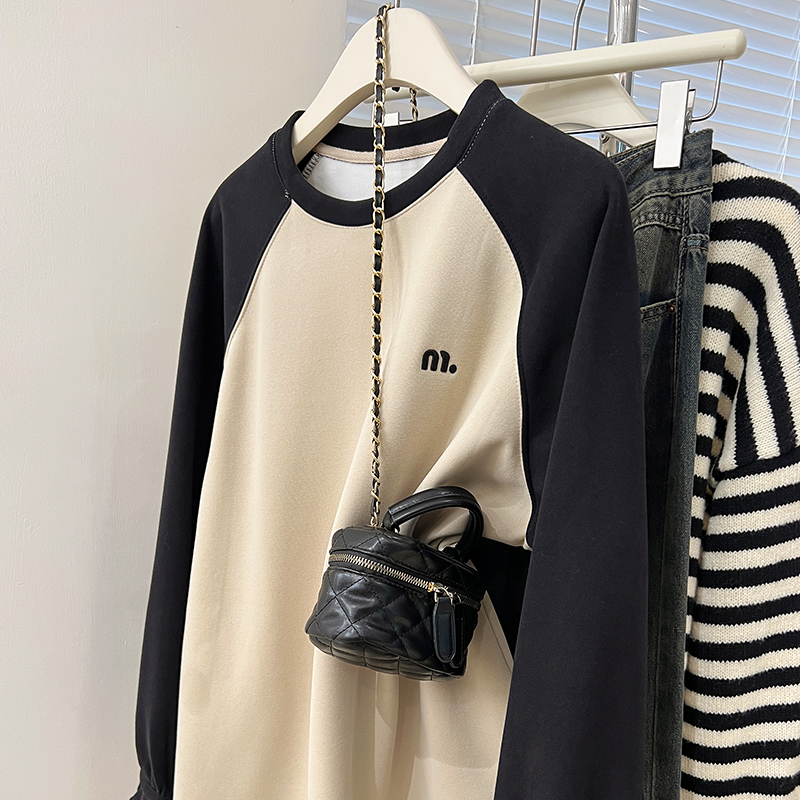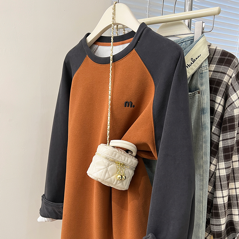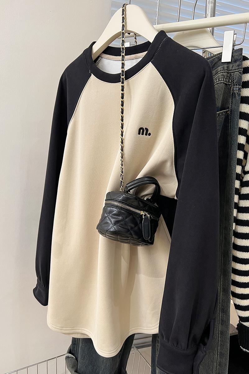 가을과 겨울을 가진 여성을위한 Real-Price Real-Price American Retro Rasp Shoulder Sweatshirt winter winter + Velvet 두꺼운 작은 사람을 대중적으로 느슨한 탑
