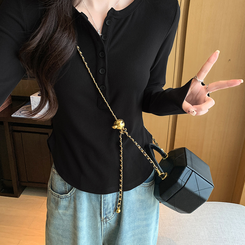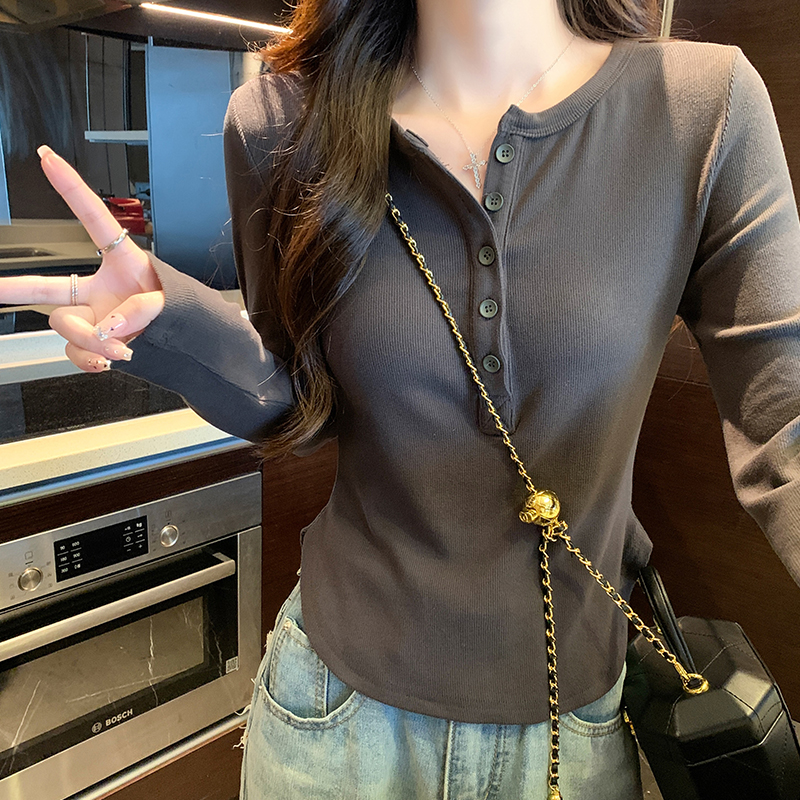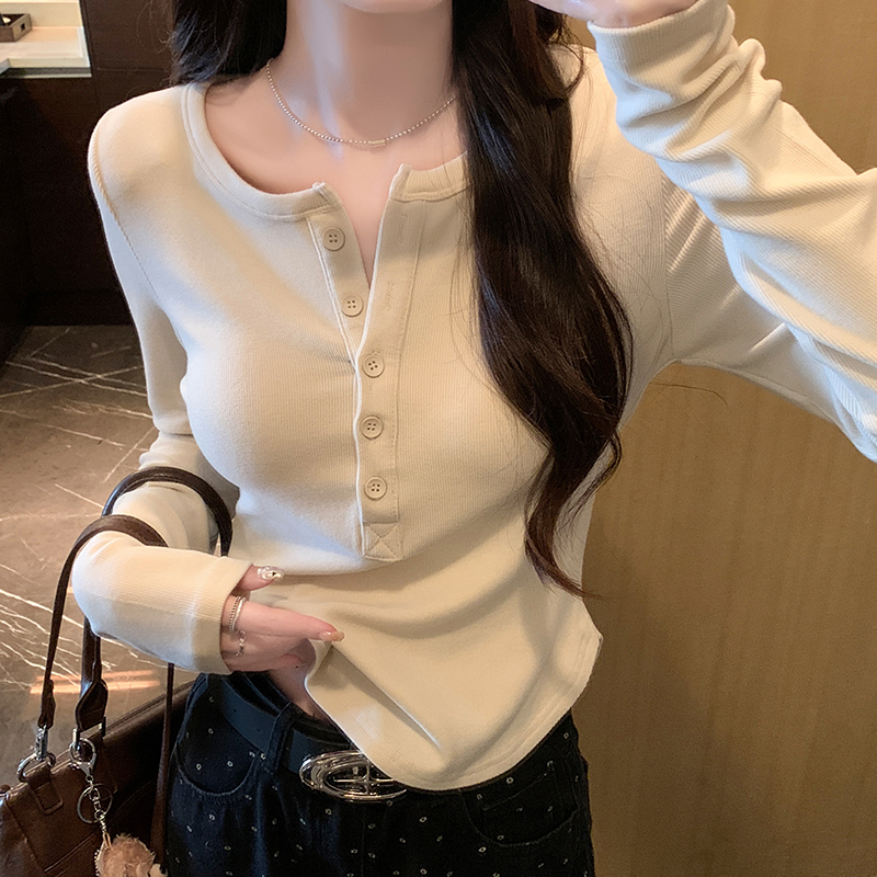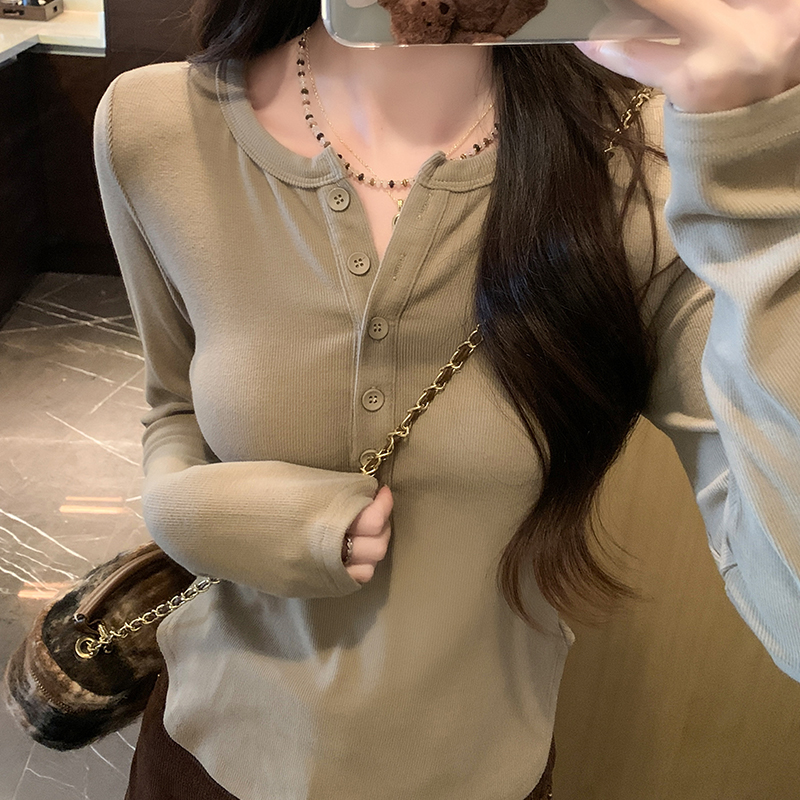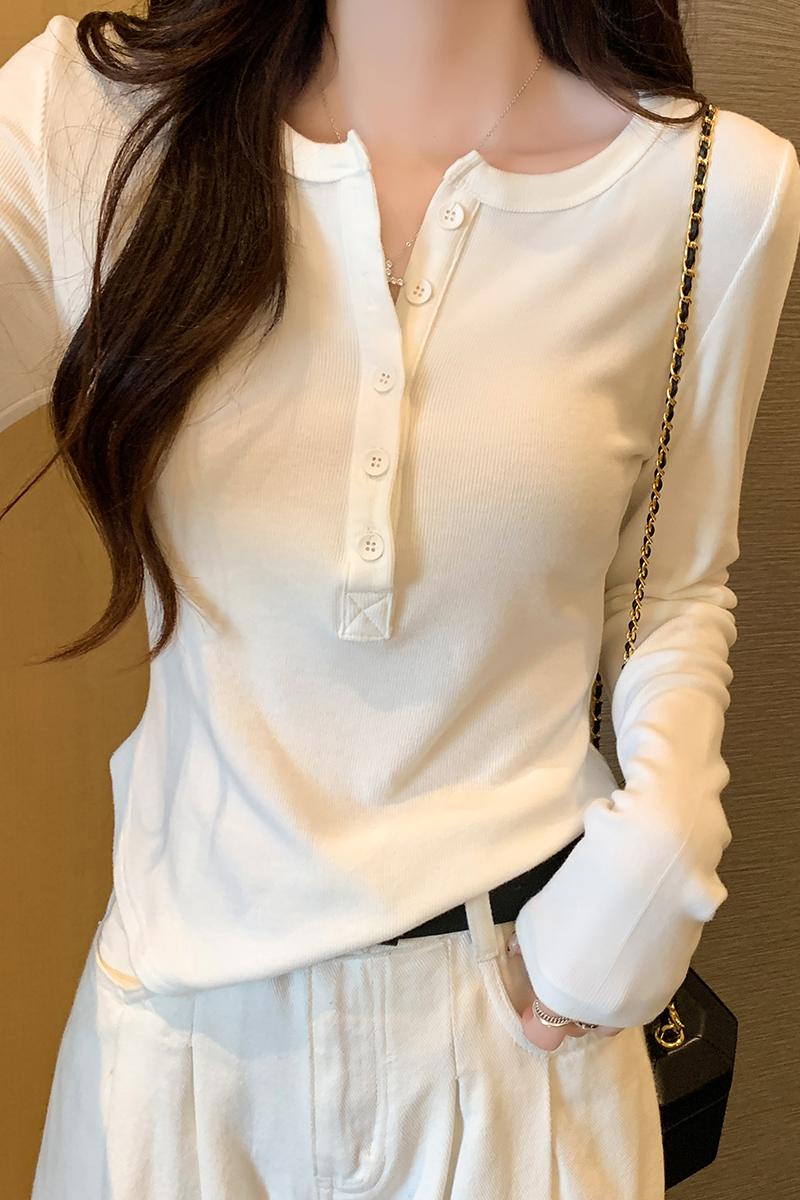 실제 가격 실제 샷 #EUROPEAN GOORD 가을과 겨울에 여성을위한 반 오픈 칼라 긴팔 티셔츠가