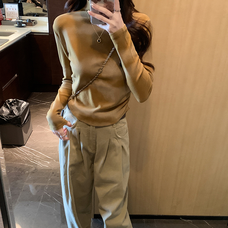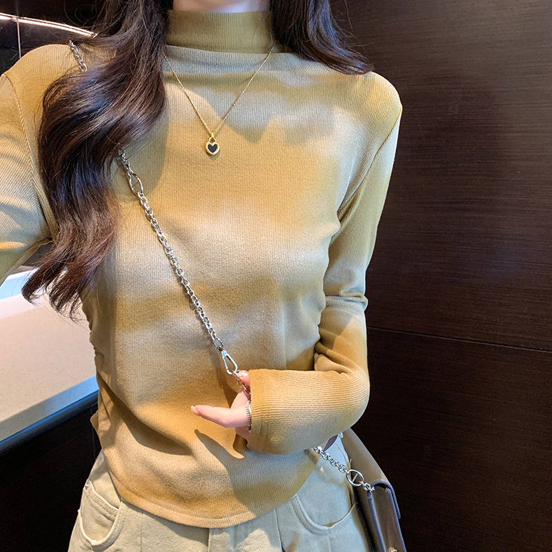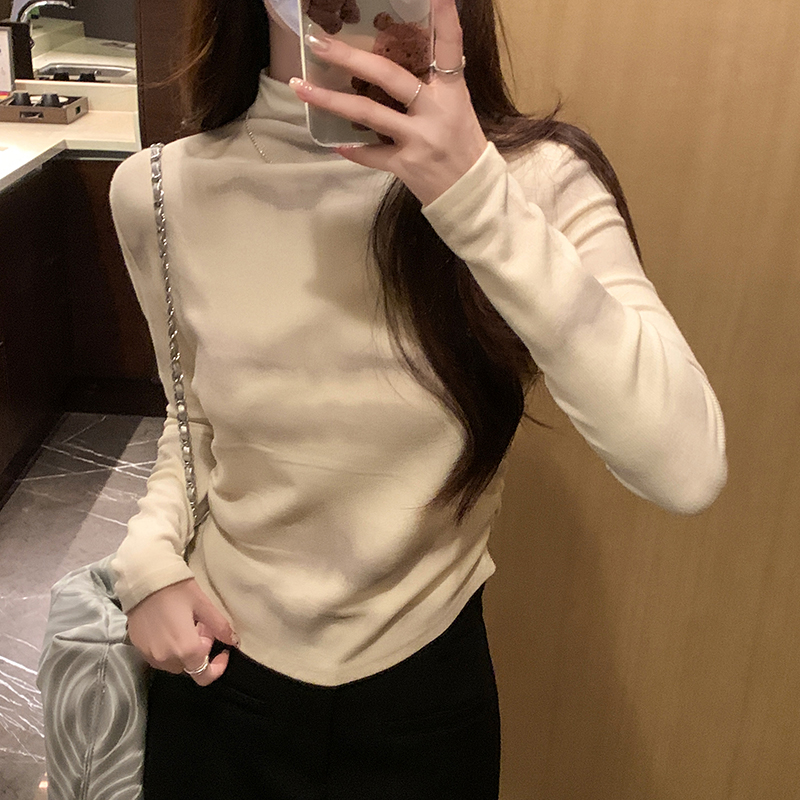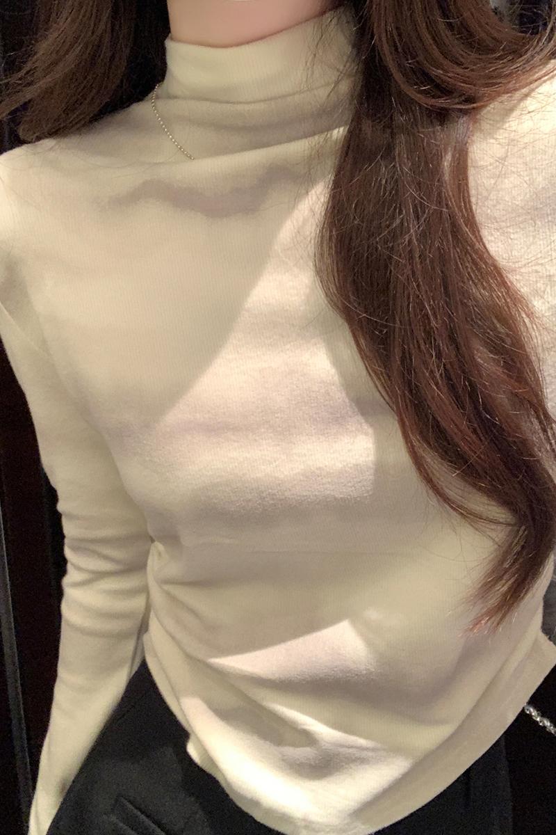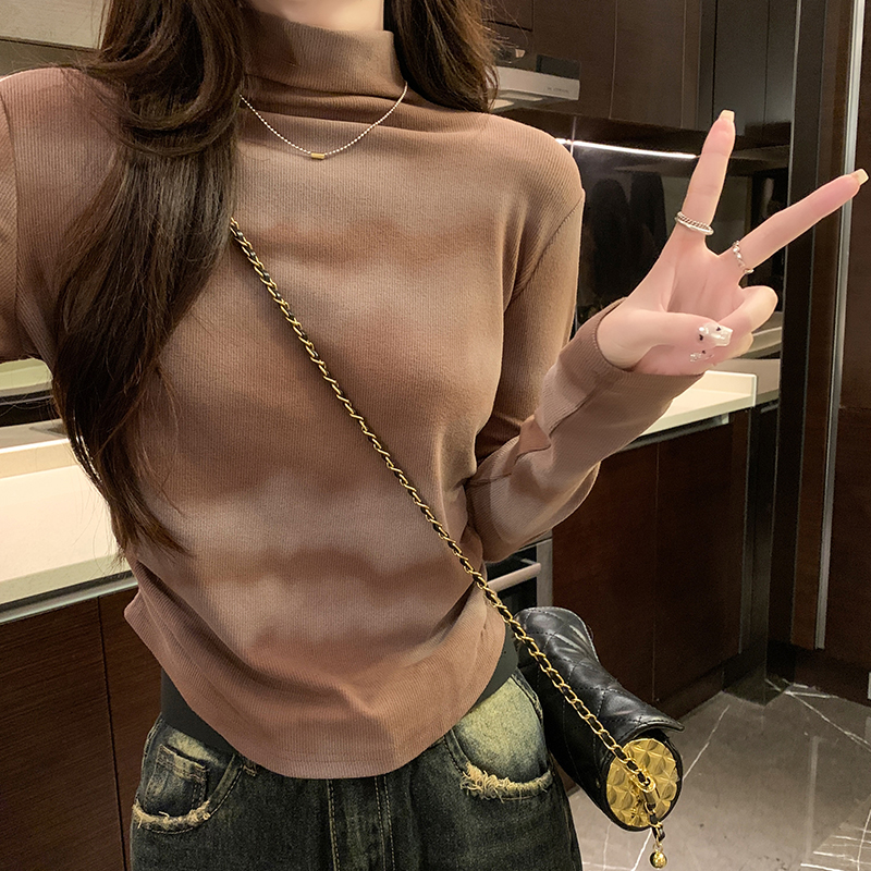 실제 가격 실제 샷 #가을과 겨울 탑 타이 염색 불규칙한 긴팔 티셔츠를 가진 여성을위한 독일 벨벳 터틀넥베이스 셔츠