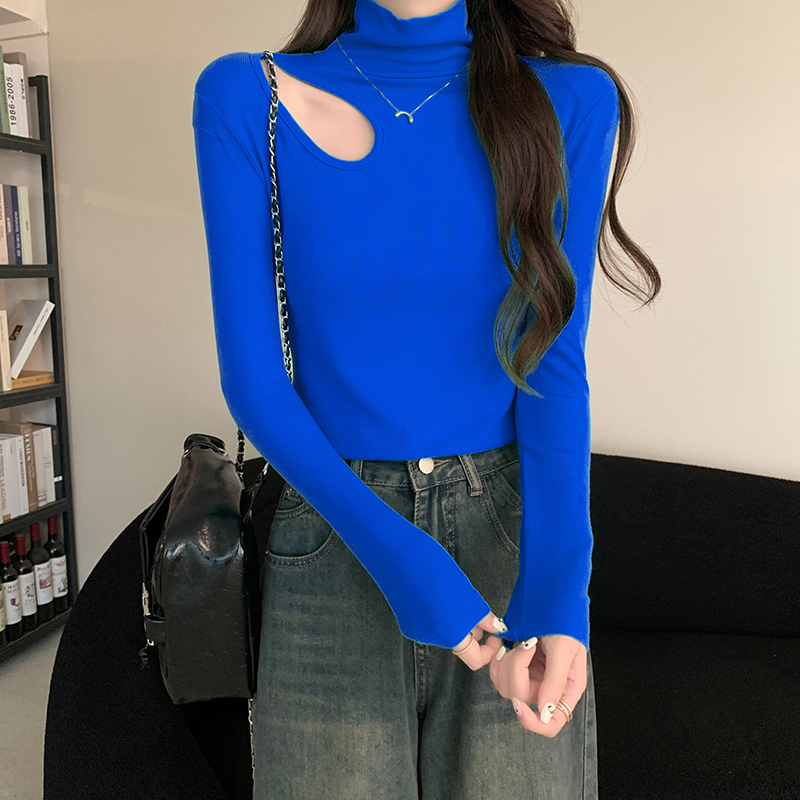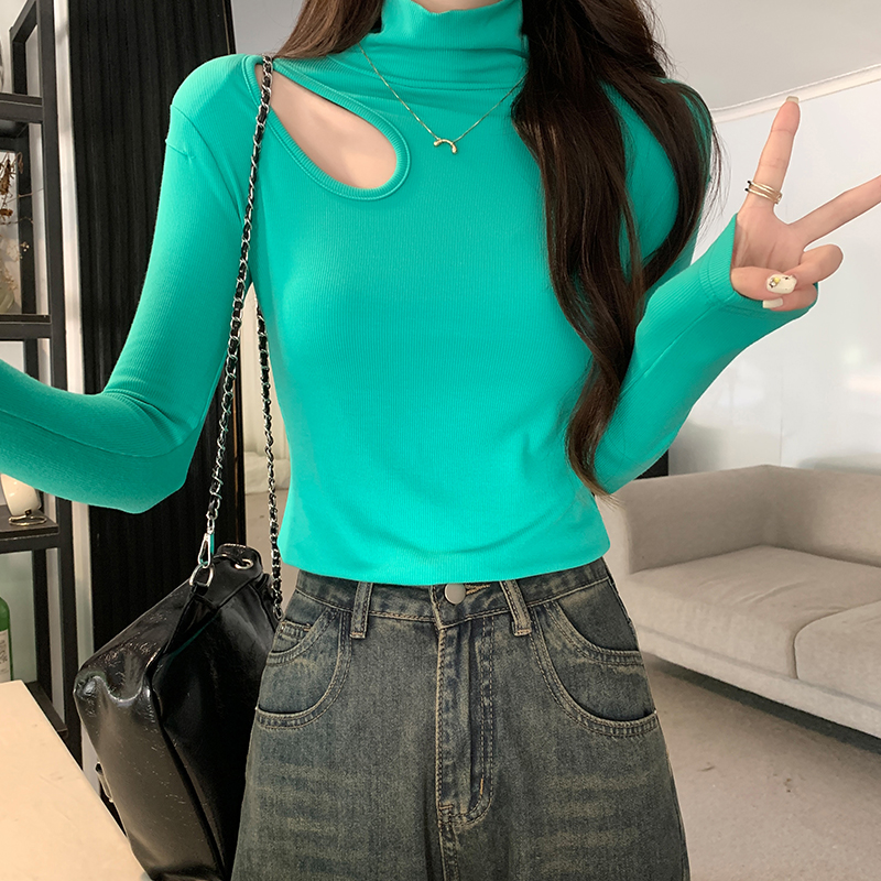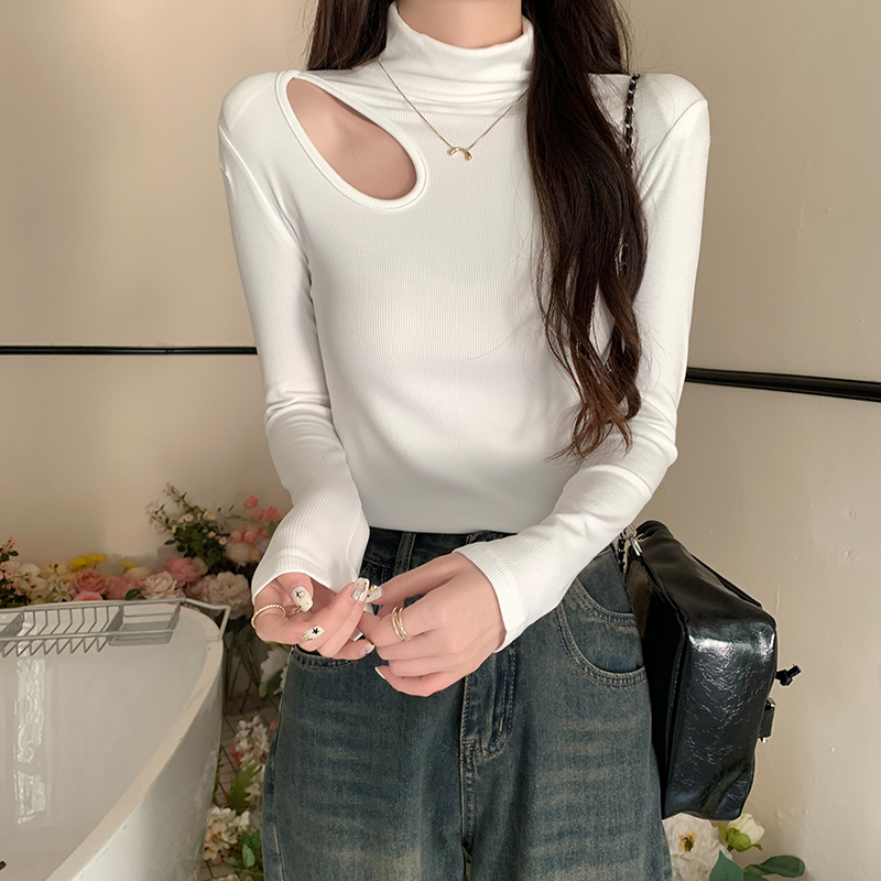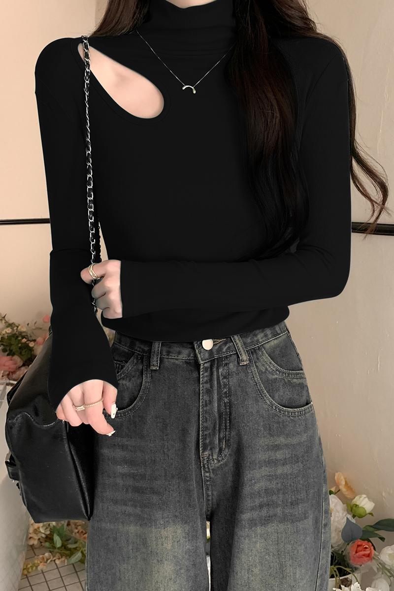 Real-Price Real-Life Shot #duli Turtleneck 세련된 디자인과 중공 탑을 가진 여성을위한 Duli Turtleneck베이스 셔츠, 긴팔 티셔츠