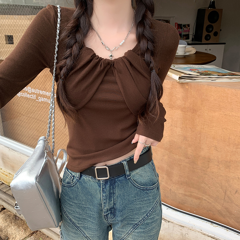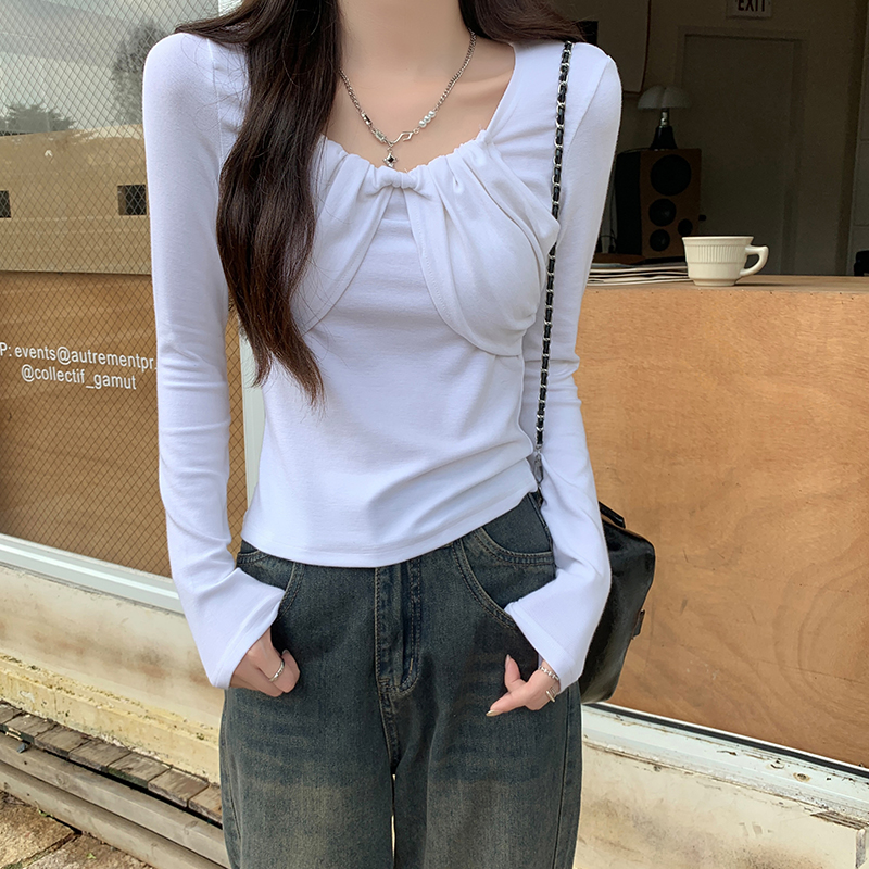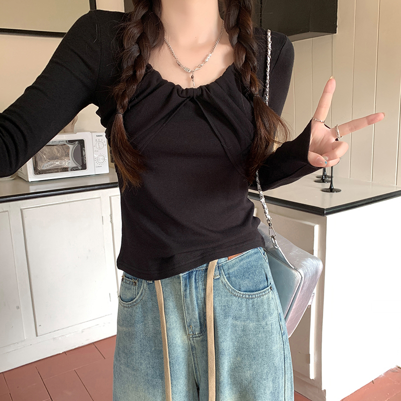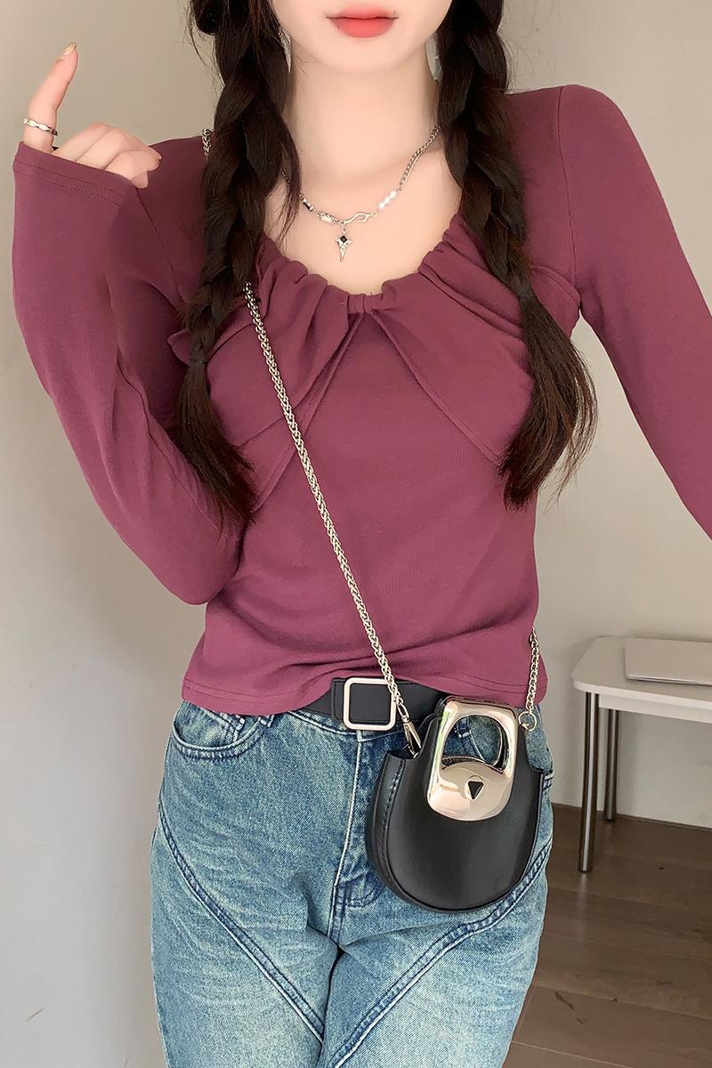 라운드넥 슬림핏 긴팔 티셔츠 여성용 가을 뉴 디자인 베이스 셔츠