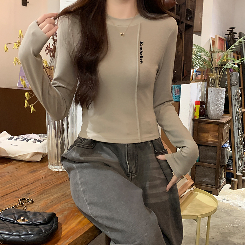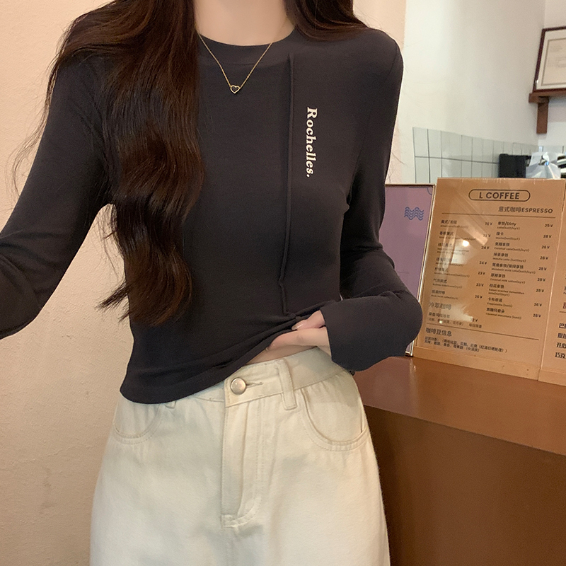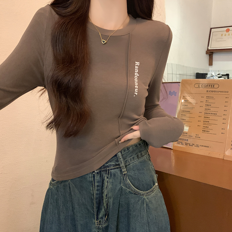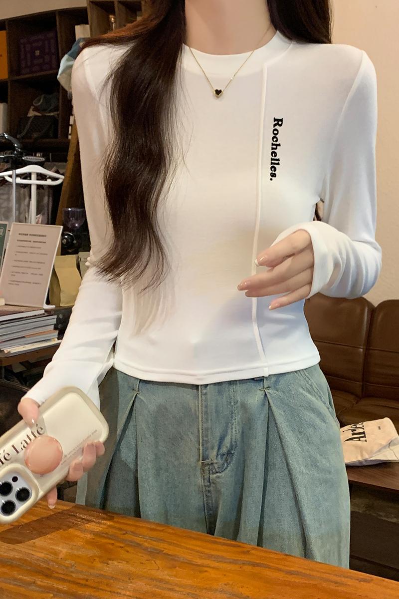 여성 디자인 틈새 가을 라운드 목 안쪽베이스 티셔츠
