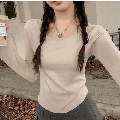 티셔츠 가을에 새로운 단색 속옷 상단 슬림하고 슬림 한 바닥 셔츠 트렌디