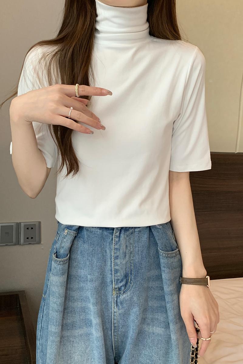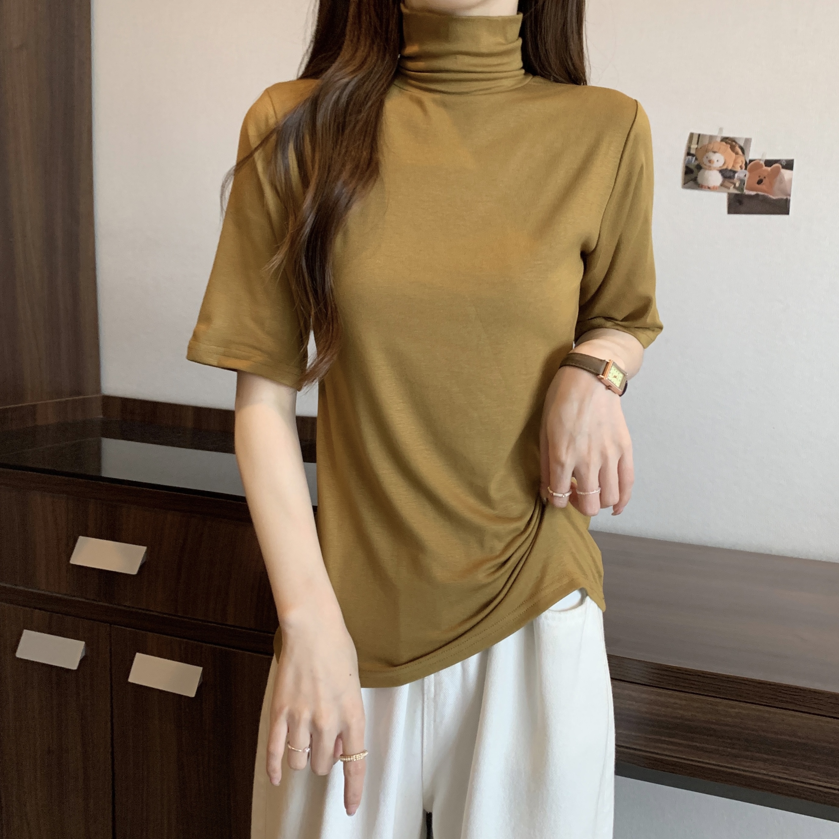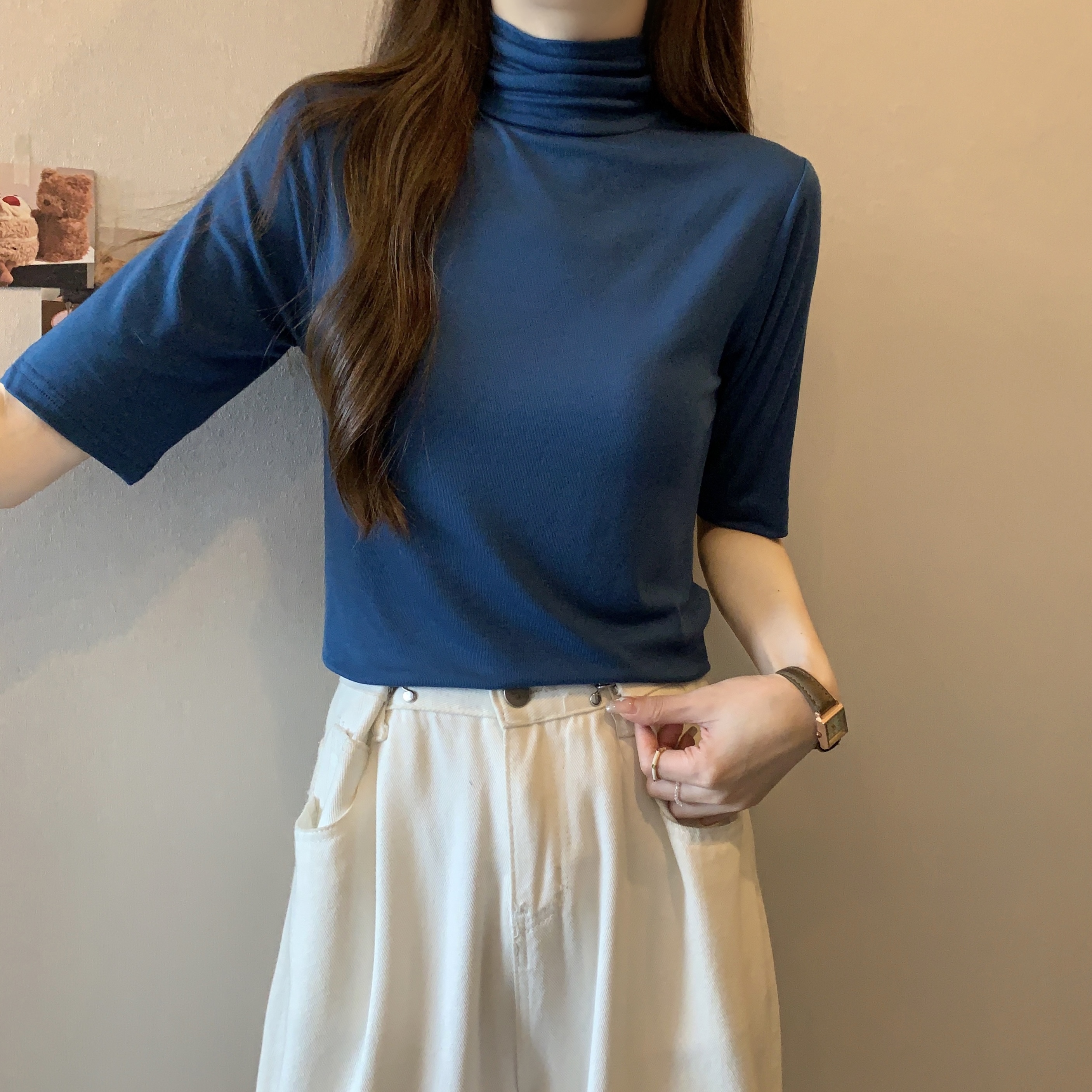 유럽 감성 3/4소매 터틀넥 미드팔 티셔츠