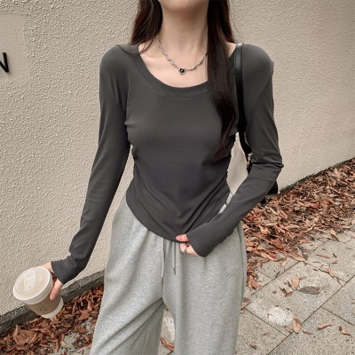 아미클 둥근 목이 긴팔 티셔츠 가을에 새로운 단색 내부 상단 슬림 한 슬림베이스 셔츠