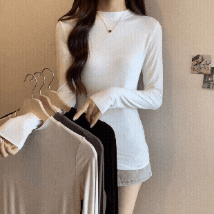 모달 장장 티셔츠 가을에있는 여성용 가을 반쯤 높은 목 바닥 셔츠 슬림하고 세련된 탑