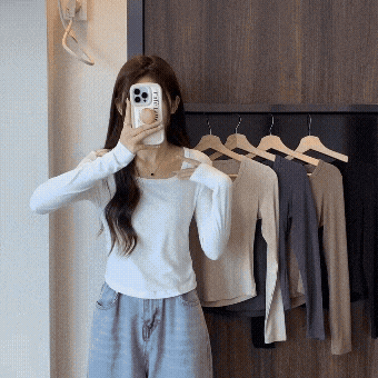 이른 가을 쇄골 티셔츠 프렌치 탑 하이 허리 슬림베이스 티셔츠
