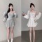 스트라이프 짧은 어깨 니트 니트 슬립 티셔츠가 느슨한 바닥 셔츠를 가진 여성을위한 티셔츠