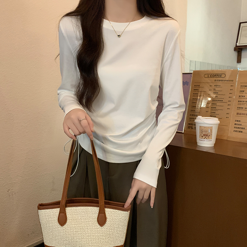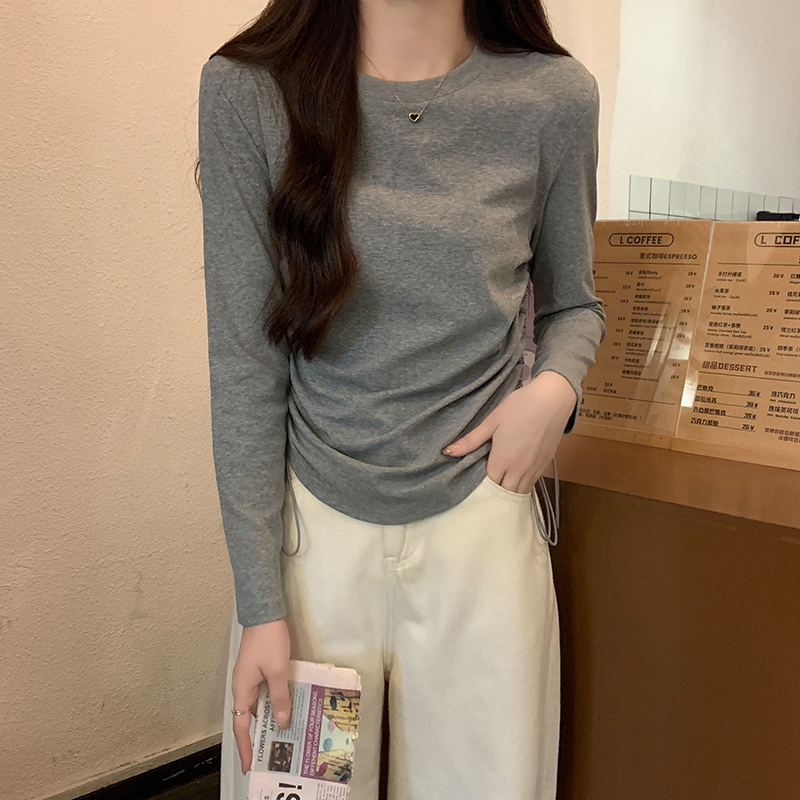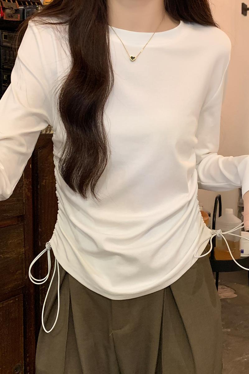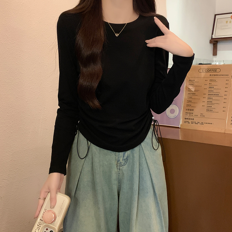 둥근 목 슬림 피트 긴 소매 여자 티셔츠 가을 새로운 단색 펌프 로프 디자인