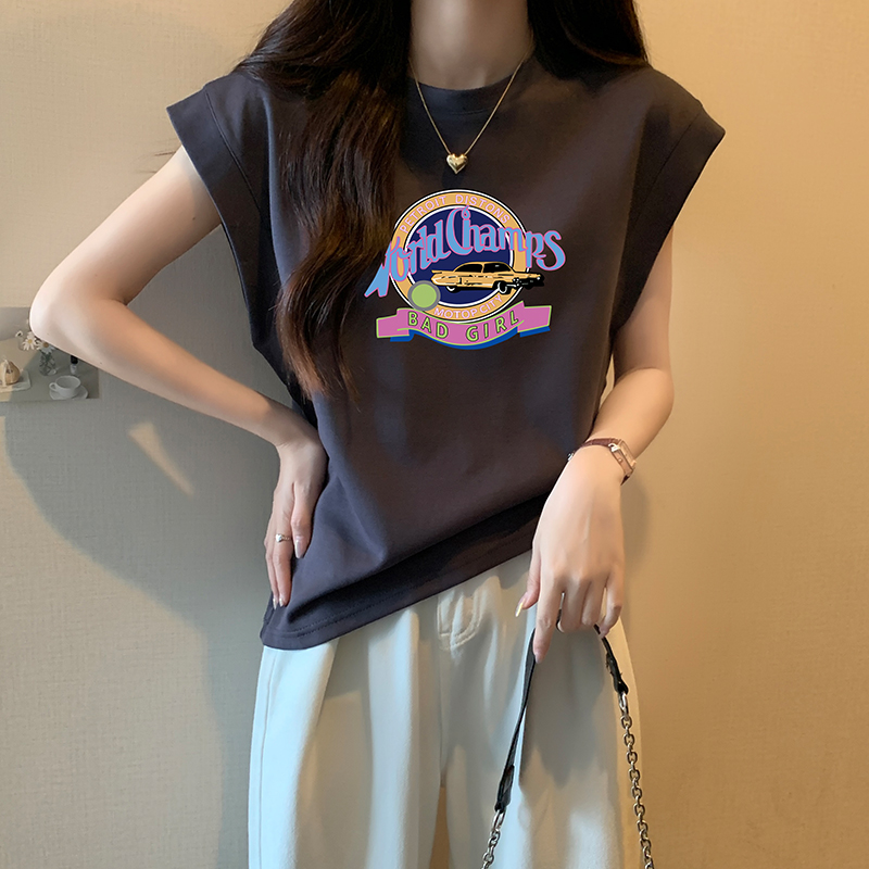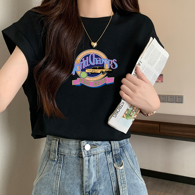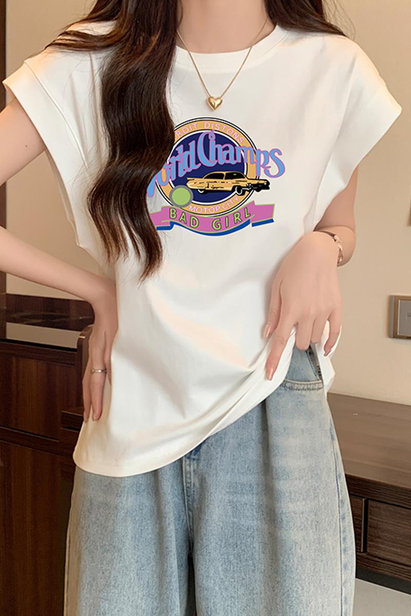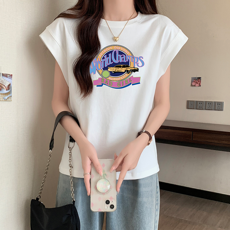 어깨 티셔츠 여성용 세련된 라운드 목 문자 인쇄 느슨한 슬림 탑 디자인