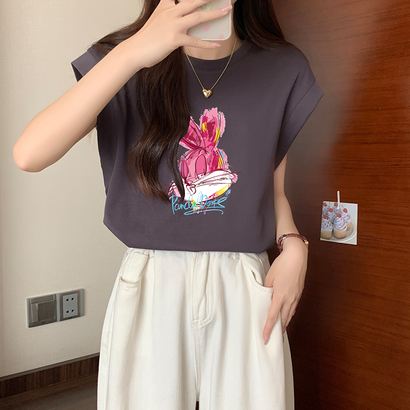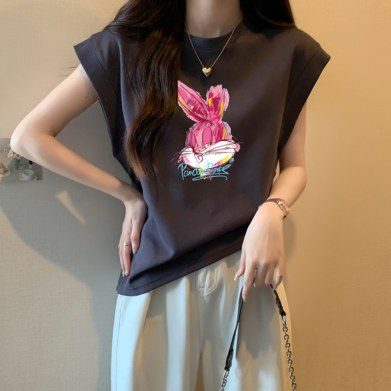 여름에 여성을위한 레벨 레스 조끼 느슨한 외부와 순수한면 티셔츠 디자인 조끼 티셔츠 탑