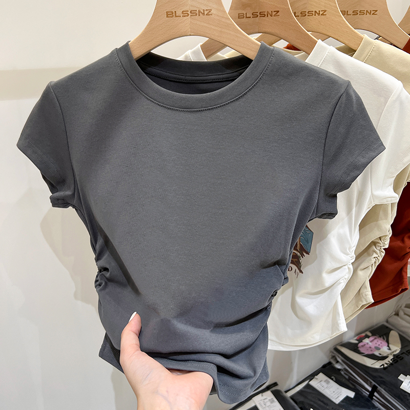 Real Price Real Shot #American Retro Sulture Inderular Short Sleeve T-Shirm Sourm Small Short Top Trendy