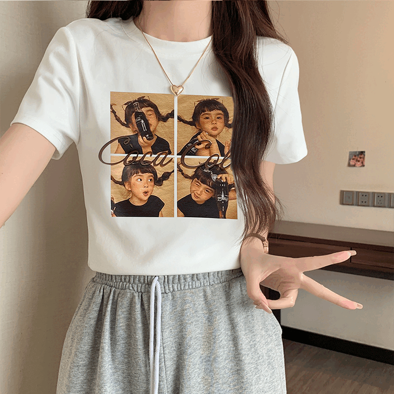 짧은팔 티셔츠 여자 짧은 탑 여름 쇄골 노출 달콤하고 매운 스타일 디자인 티셔츠