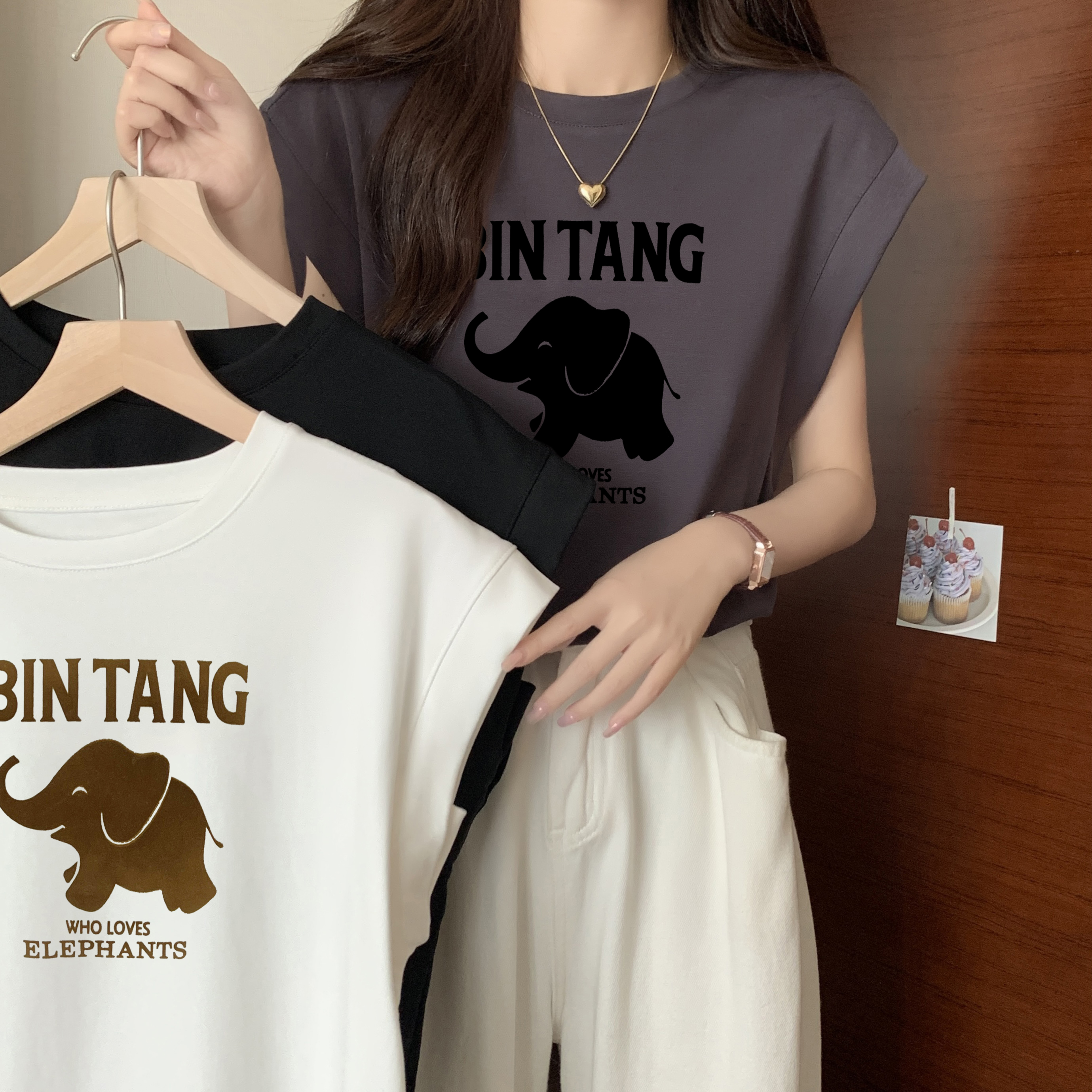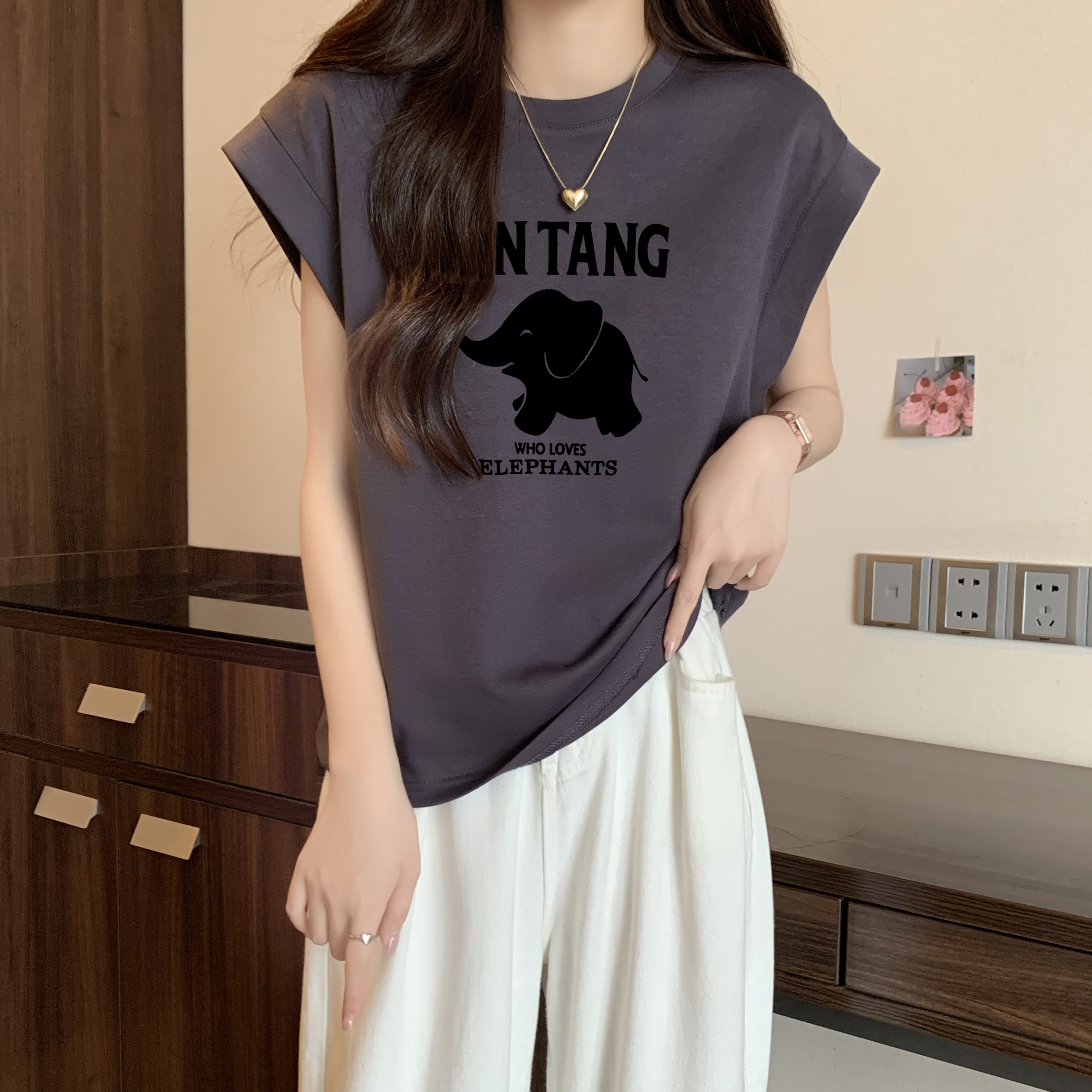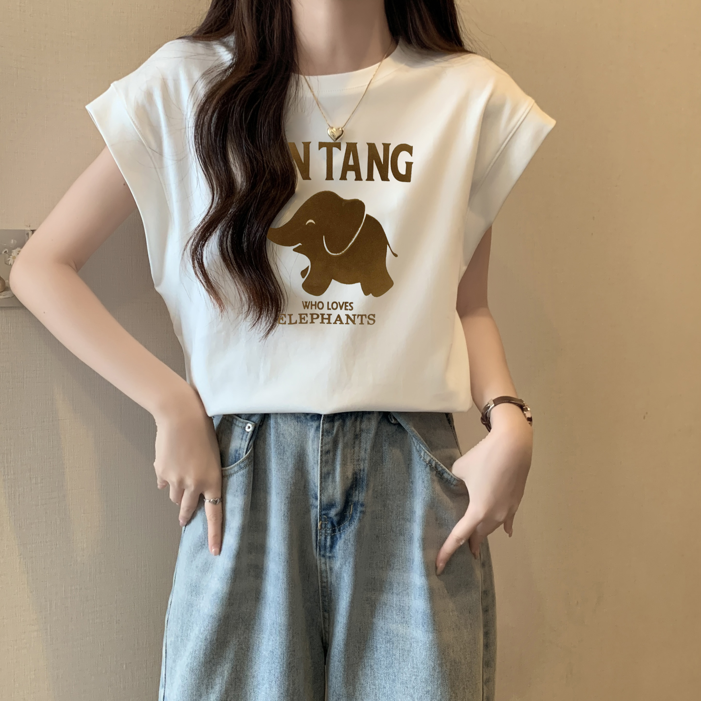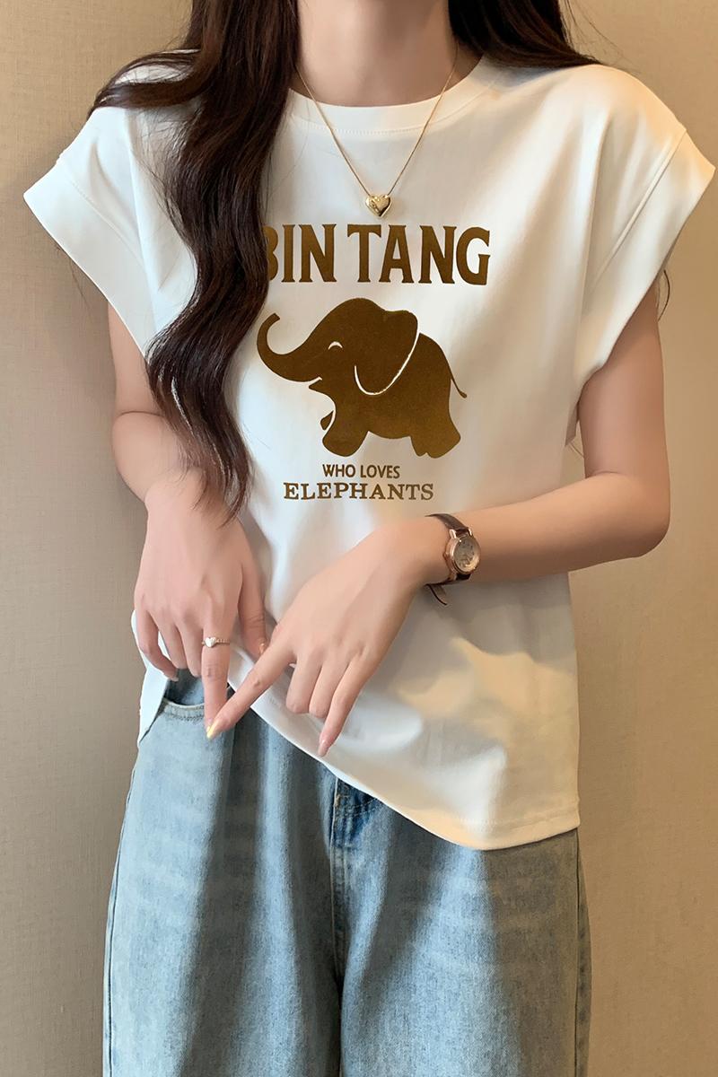 여자 조끼 라운드 넥 티셔츠 인쇄 여름 고급 핫 걸 슬림하고 느슨한 소매 탑