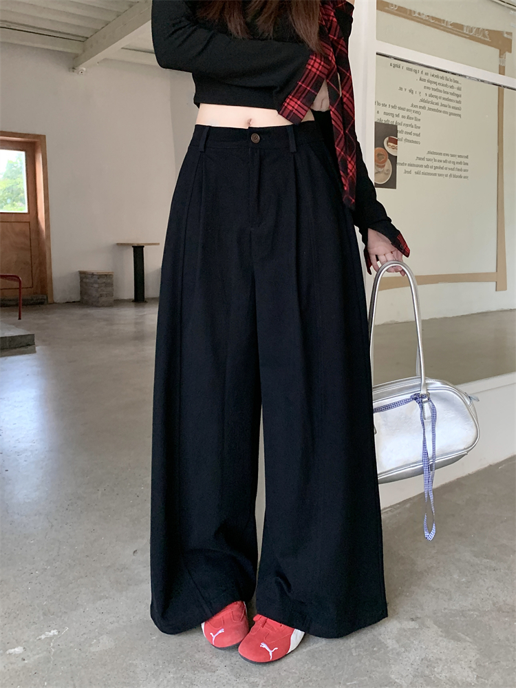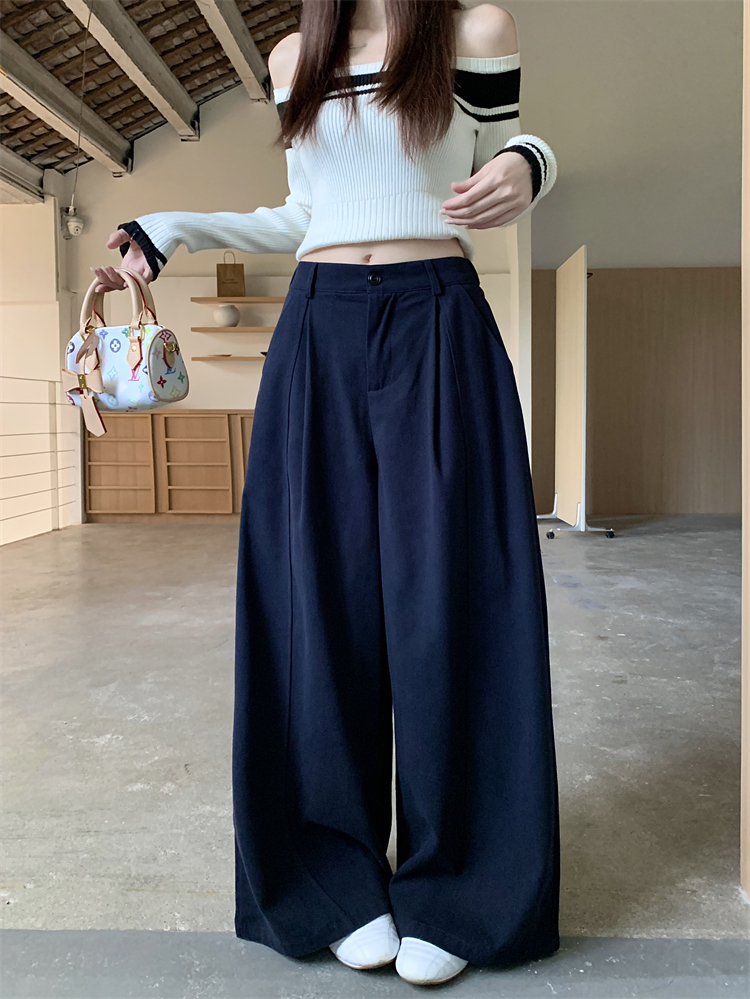 실제 샷, 실제 가격 ~ 흰색 디자인 및 기질 정장 바지 넓은 다리 바지 가을 높이 허리 처벌 바지에서 여성을위한 캐주얼 바지