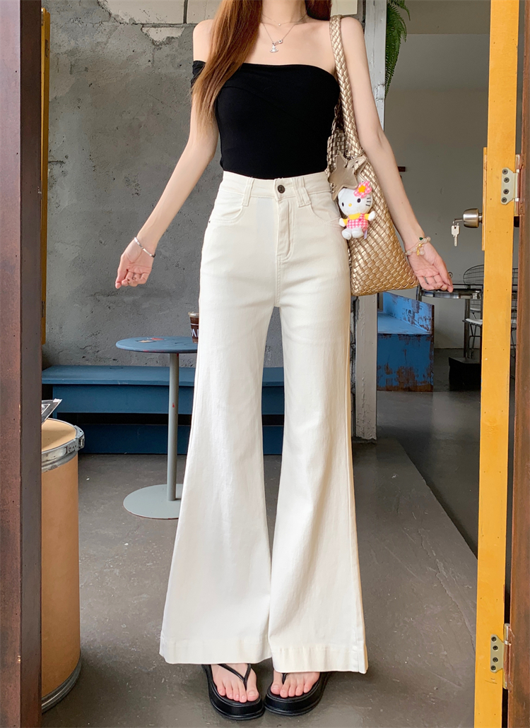 진짜 샷, 실제 가격 ~ 여자를위한 흰색 플레어 청바지 다리가없는 새로운 미국 느슨한 작은 사람, 플레어 바지