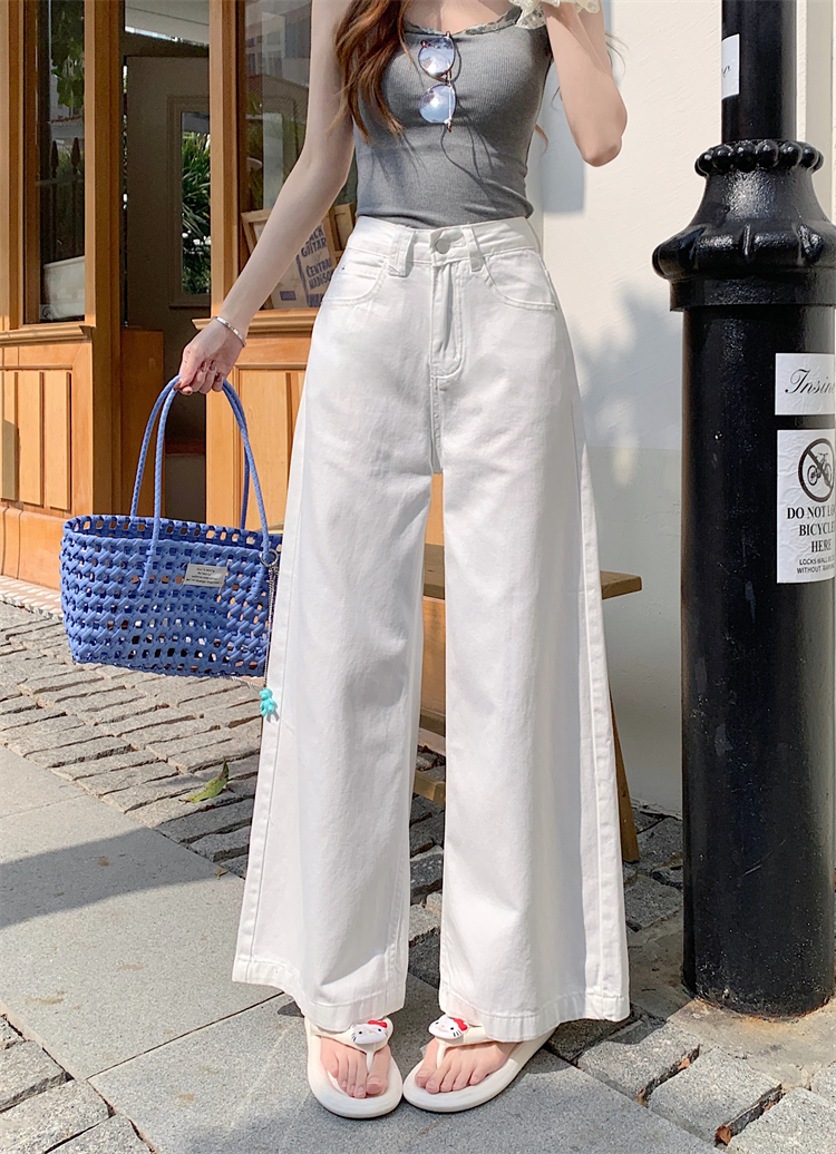 실제 샷, 실제 가격 ~ 여성의 새로운 하이 웨이스트 느슨한 피팅 슬림, 작은 넓은 다리 바지를위한 레트로 세탁 가능한 스트레이트 청바지