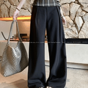 실제 사진 및 가격 미국 블랙 격자 무늬 패치 허리 디자인 하이 허리 스트레이트 레그 캐주얼 슈트 바지