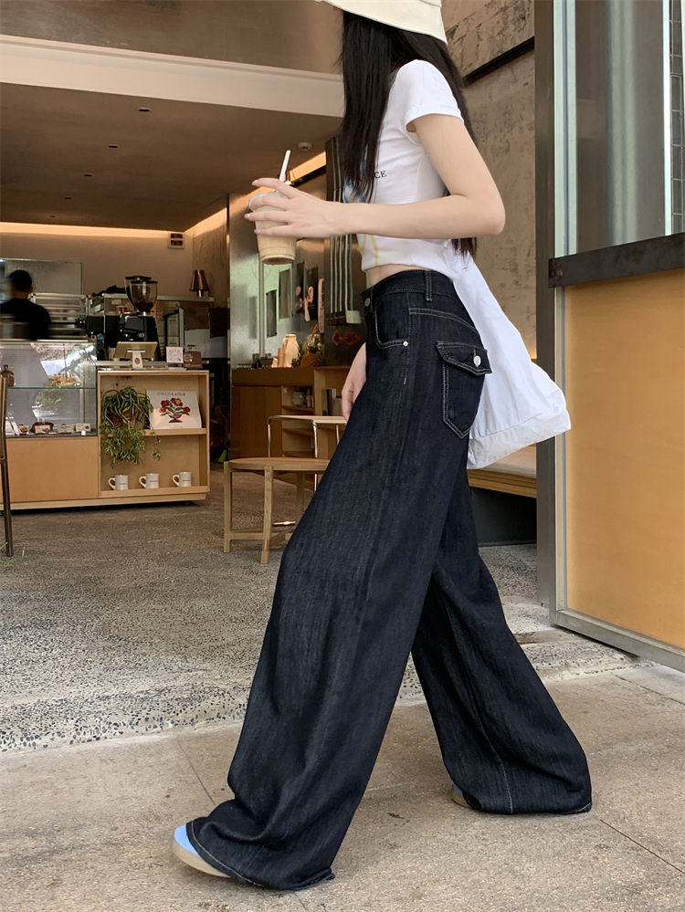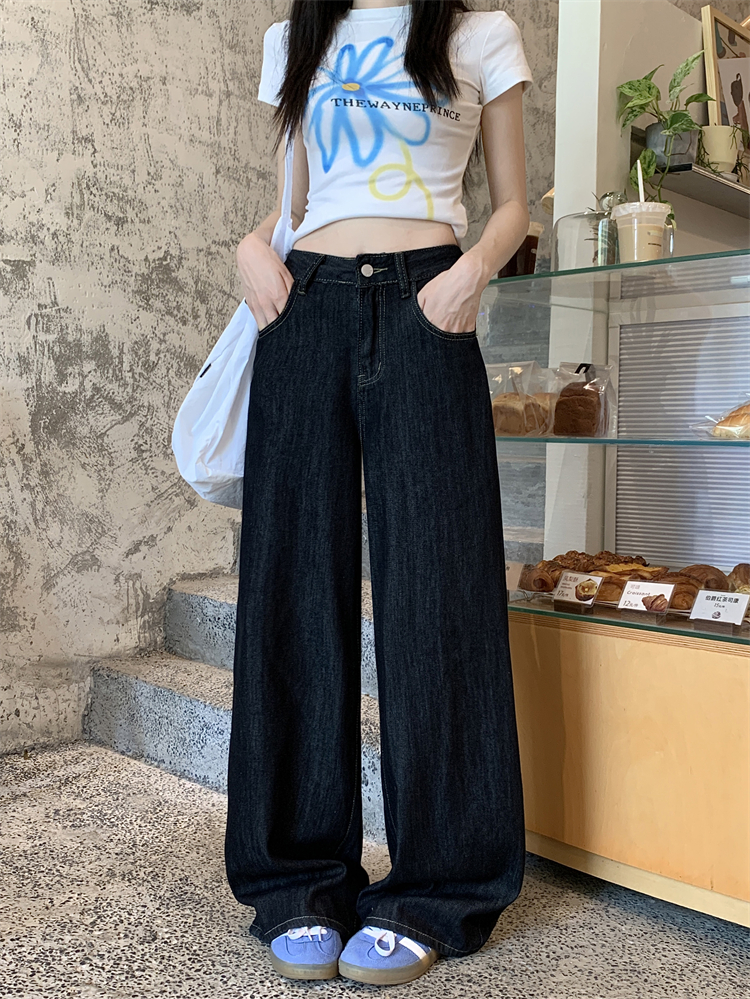 Real Shot, Real Price ~ American Retro Dark Blue Jeans for Women 's New High-Waist Looke Wide Leg Straight-Leg Mopping 바지