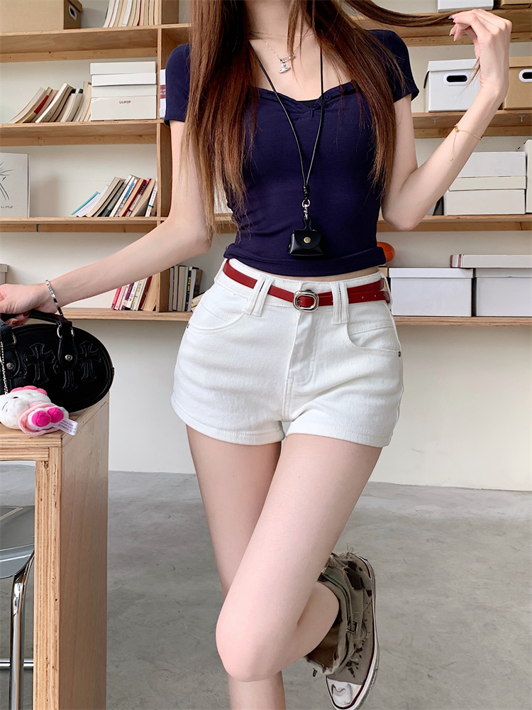실제 샷, 실제 가격 ~ 새로운 미국인 핫 팬츠, 핫 여자 데님 반바지가 높은 허리 A- 라인 슬리밍 및 다목적 꽉 반바지