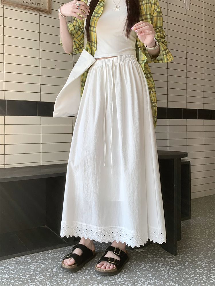 실제 샷과 실제 가격 고급 한국 레이스 스 플라이 싱 흰색 치마 New Style New Style Small A-Line Umbrella Skirt Long Skirt