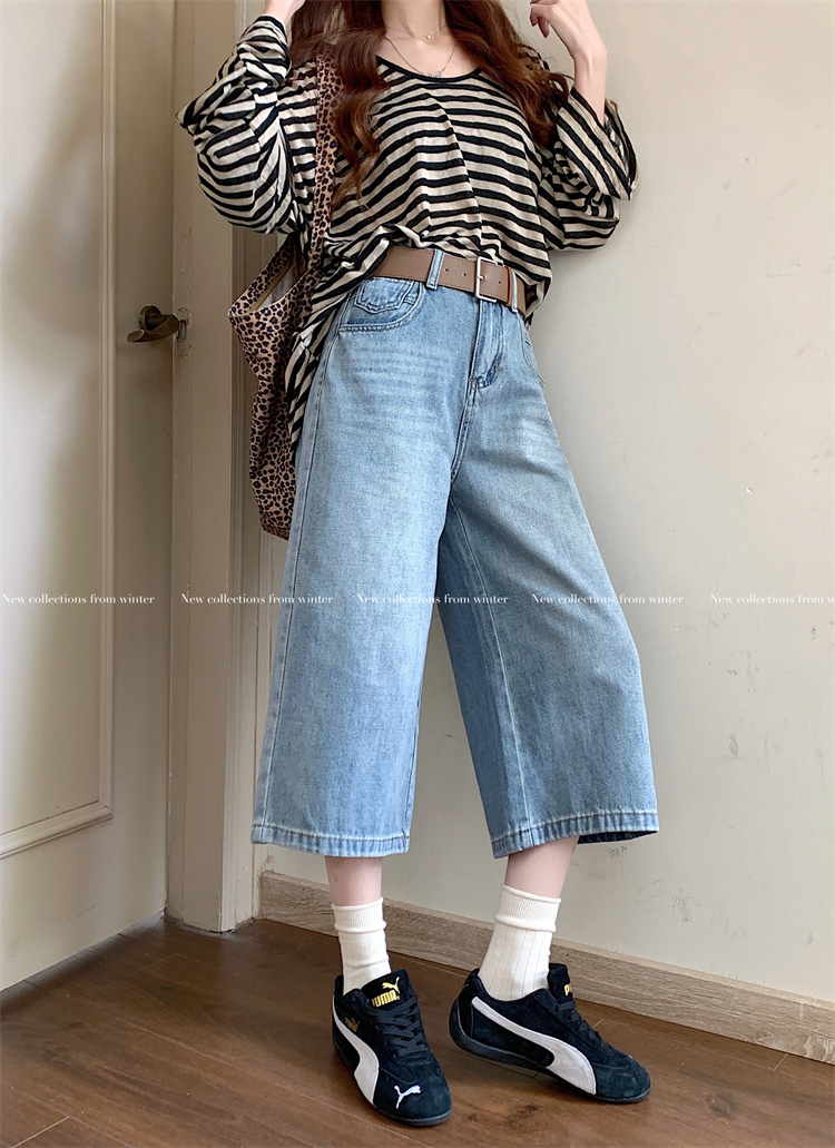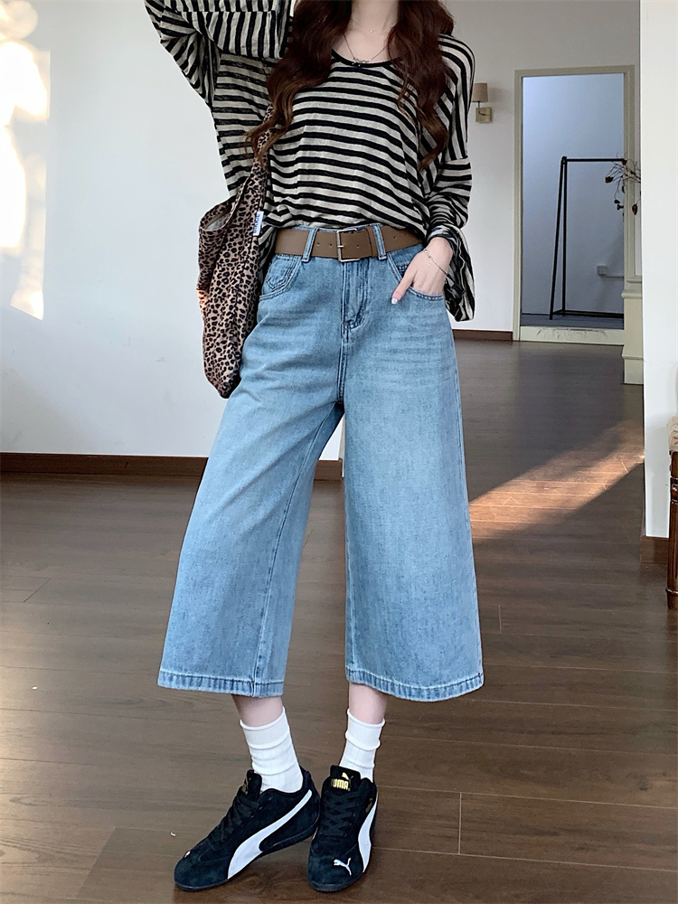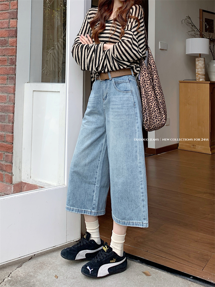 진짜 샷, 실제 가격 ~ 미국 레트로 하이 스트리트 청바지가 높은 허리를 똑바로 슬리밍하는 직선형 레그 8 레그 바지 중간 바지를위한 여성을위한 청바지