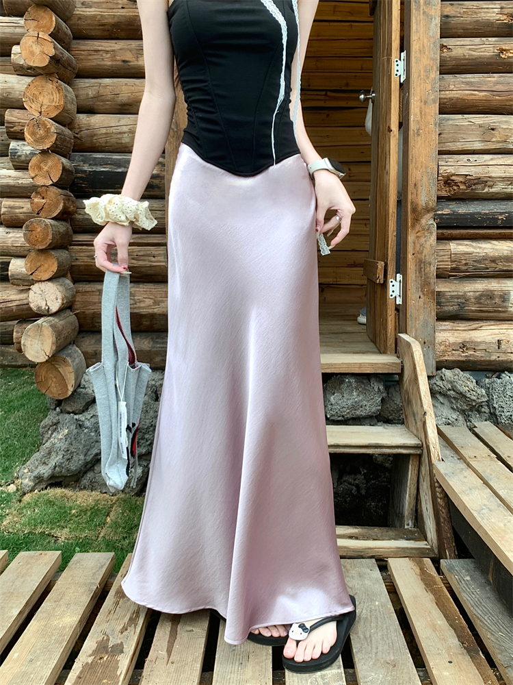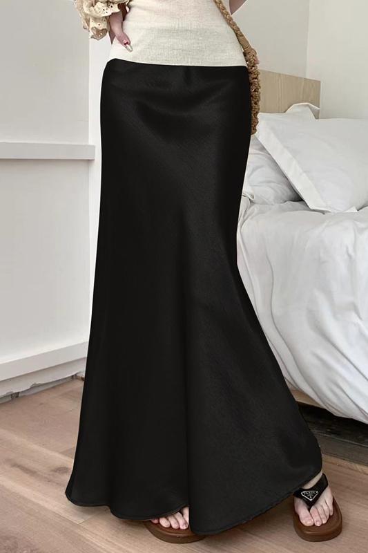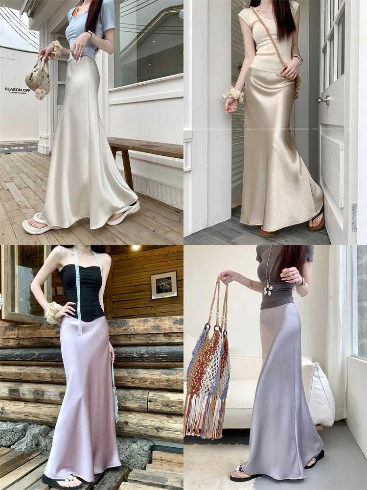 여성의 새로운 프랑스 기질 슬림 한 낚시 낚시 치마를위한 실제 하이 웨이스트 아세테이트 새틴 미드 길이 치마