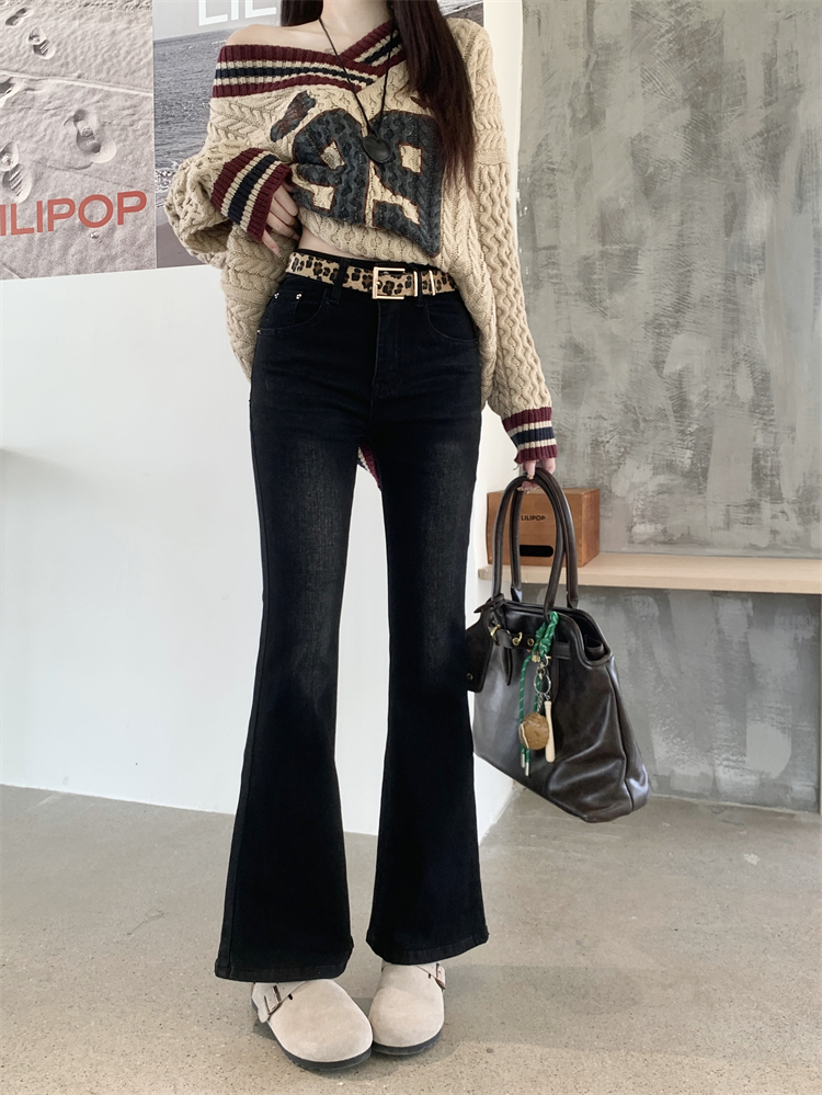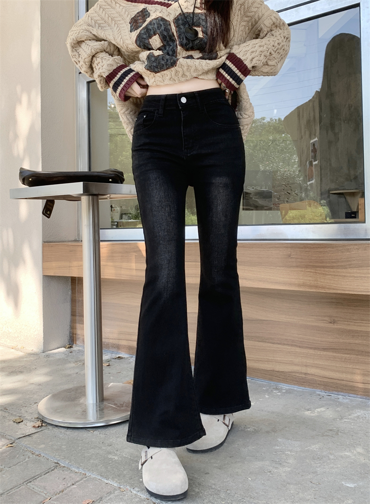 허리 슬림하고 작은 다재다능 플레어 바지를 가진 여성을위한 미국 레트로 청바지