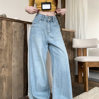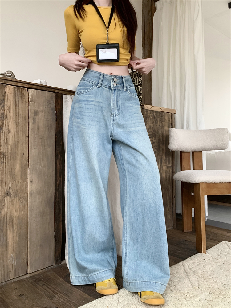 여성의 새로운 하이 웨이스트 슬림 한 연속 및 다재다능한 작은 바지를위한 레트로 와이드 레그 청바지
