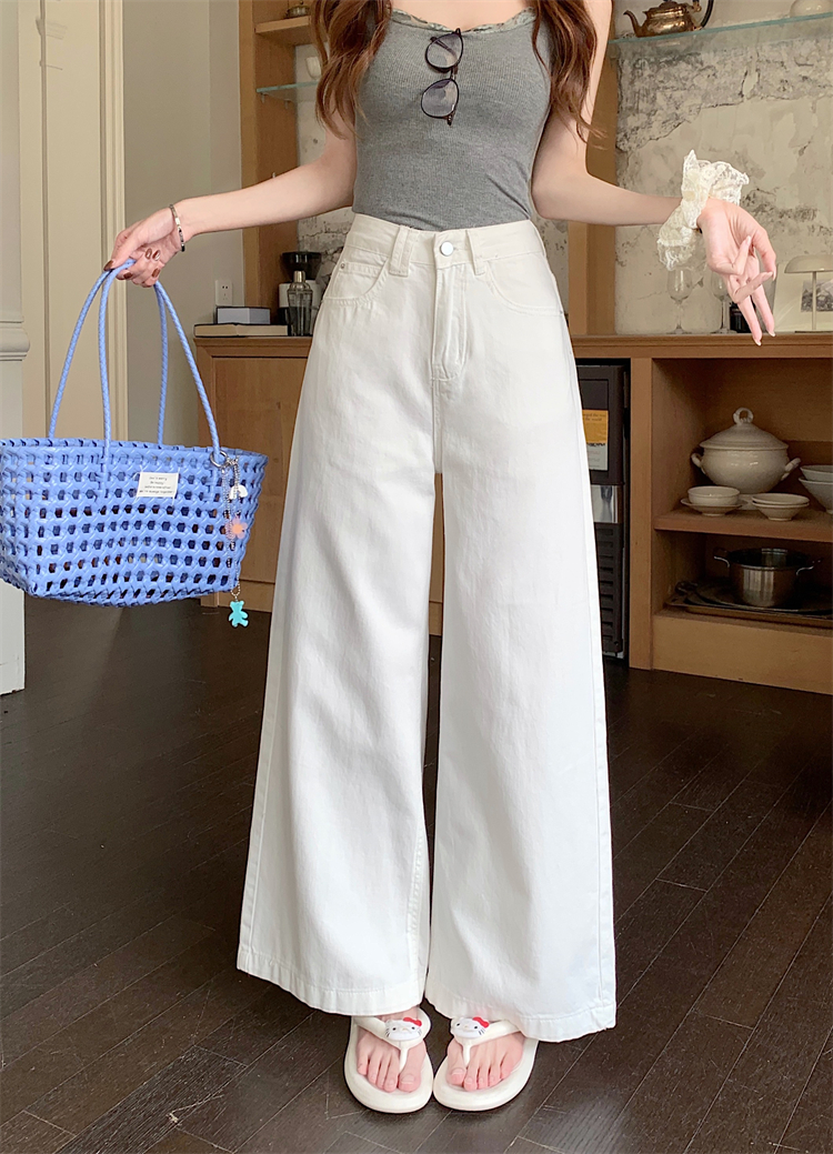 여성의 새로운 하이 웨이스트 느슨한 피팅 슬림, 작은 넓은 다리 바지를위한 레트로 세탁 가능한 스트레이트 청바지