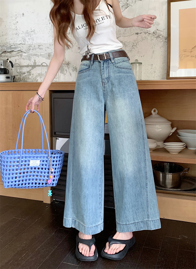 느슨한 느슨한 느슨한 작은 넓은 레그 9 포인트 바지를위한 직선 청바지