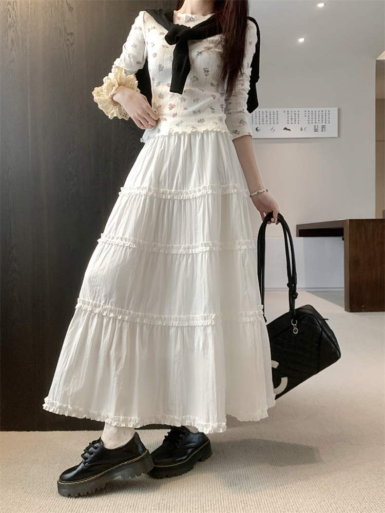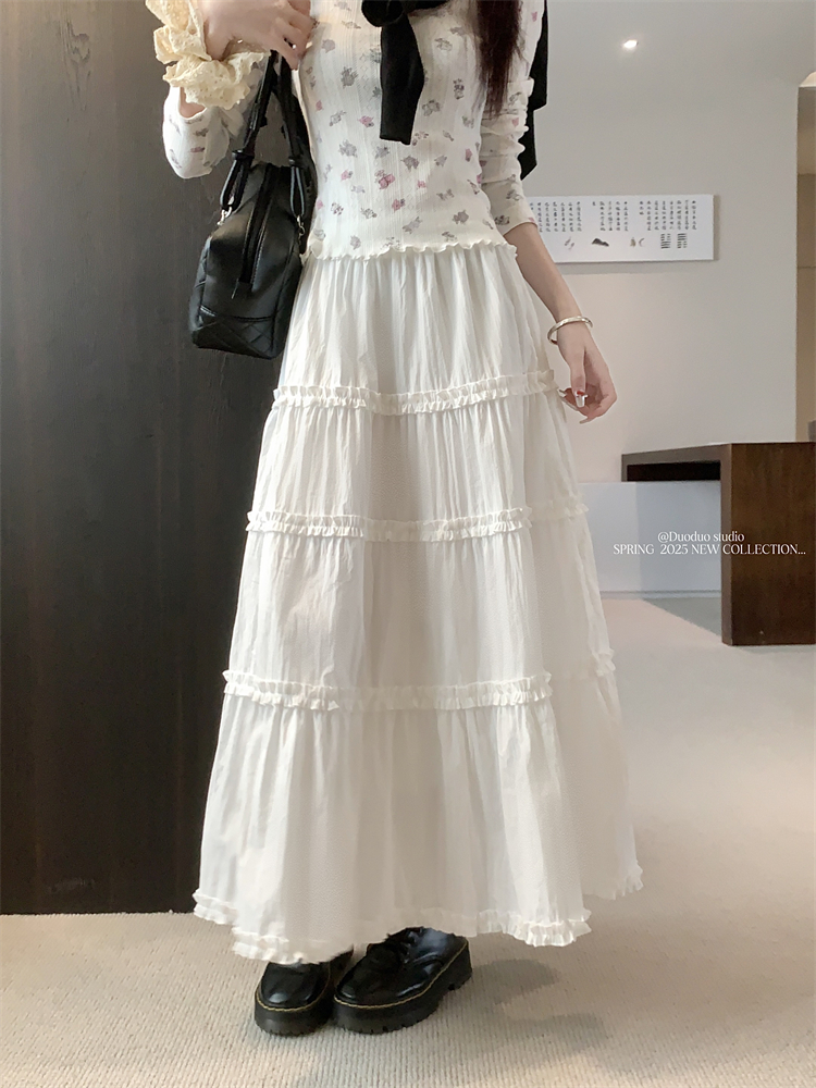 스위트 스타일의 여성을위한 흰색 레이스 케이크 스커트