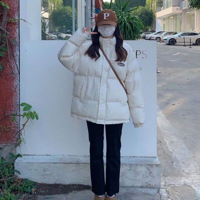 실제 촬영 목화 의류 여자 외투 한국어 버전 짧은 단락 빵 서비스 작은 남자 큰 사이즈 항구 바람 느슨한 다운 재킷 학생 지방 mm