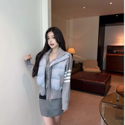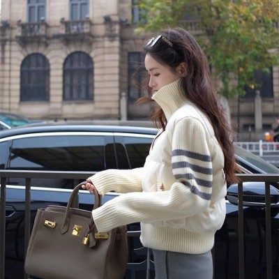 인터넷 그림 네 개 바 더블 색상 트렌드 한국 스타일 베이지 색 스트라이프 패치워크 면 의류 여성 겨울 고급 센스 작은 키