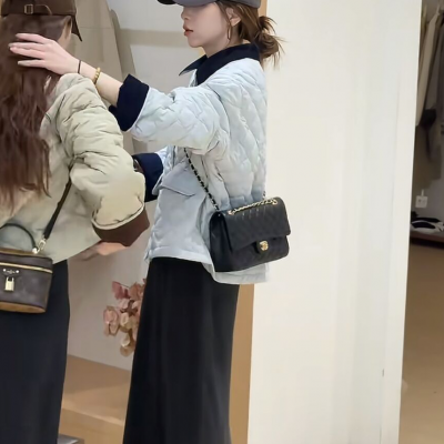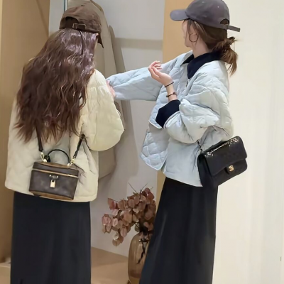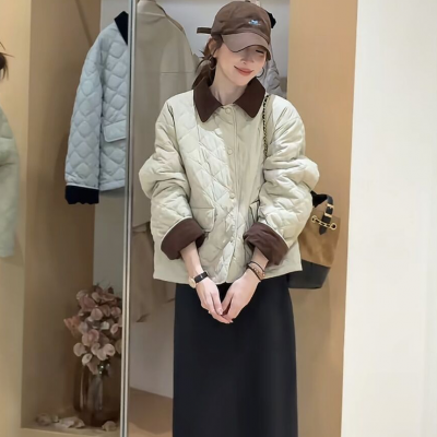 락 캔디 밤나무 가을 겨울 한 부서 캐주얼 루즈핏 미니멀리즘 기초 다용도 슬림해 보이는 링 그리드 솜을 넣은 맨위