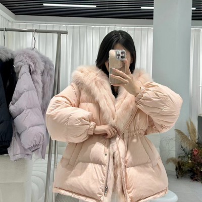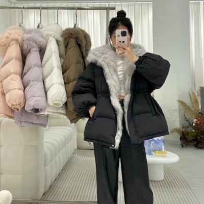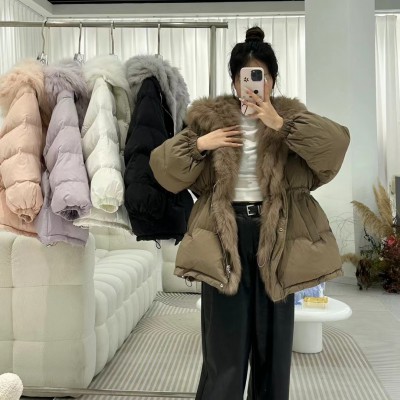 새로운 큰 모피 칼라 후드 중간 길이 한국 스타일 아래 면화 의류 여성 허리 수축 슬림해 보이는 패딩