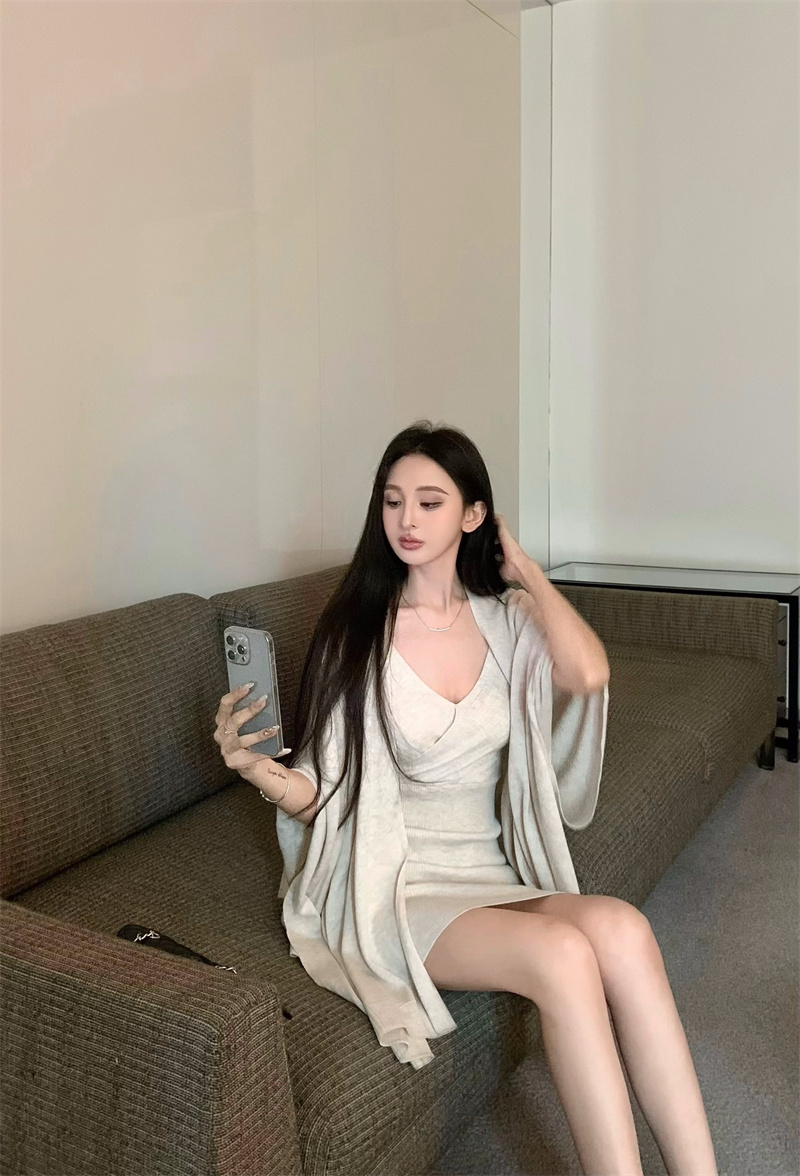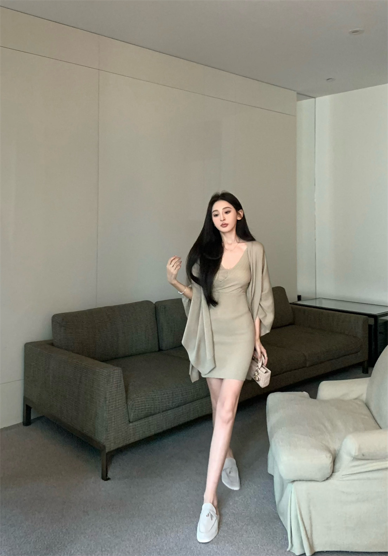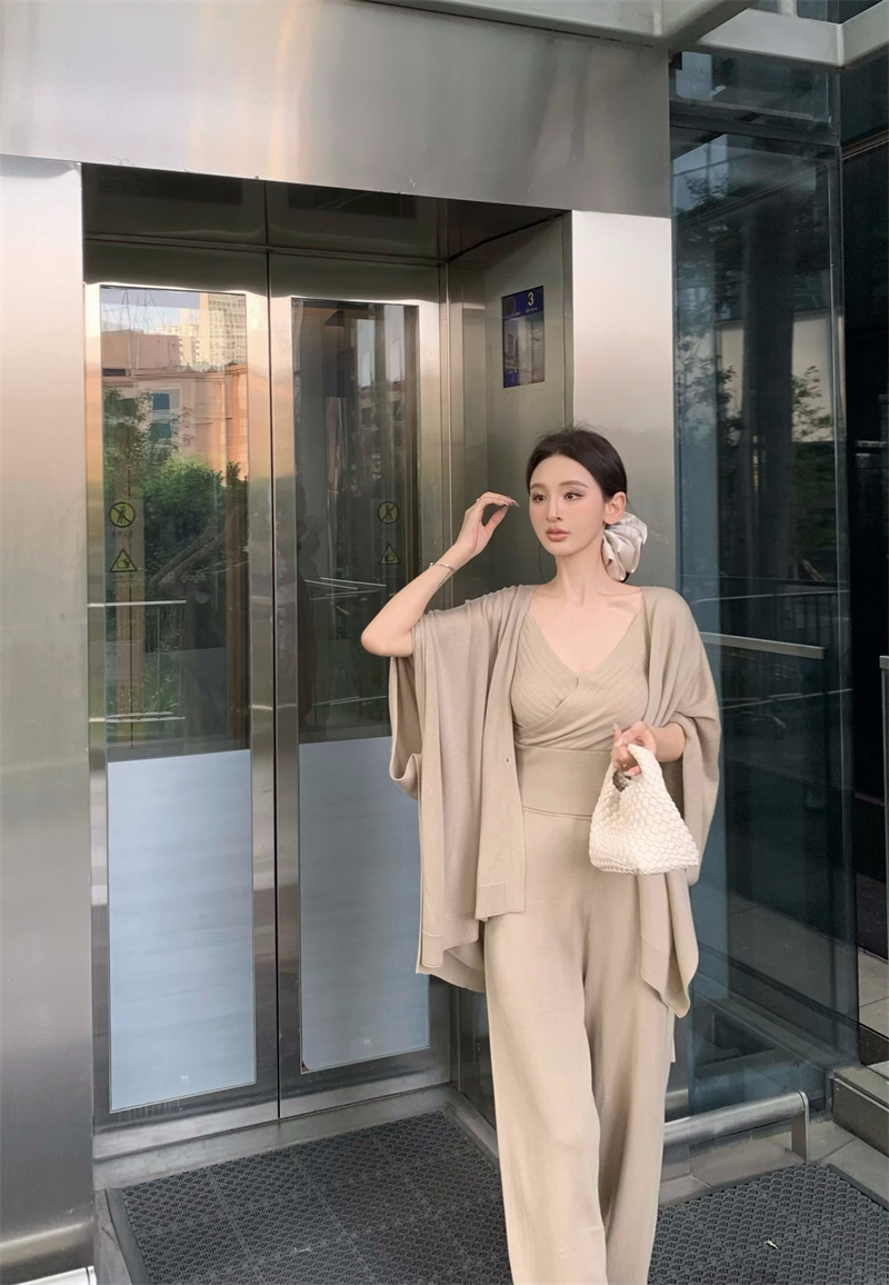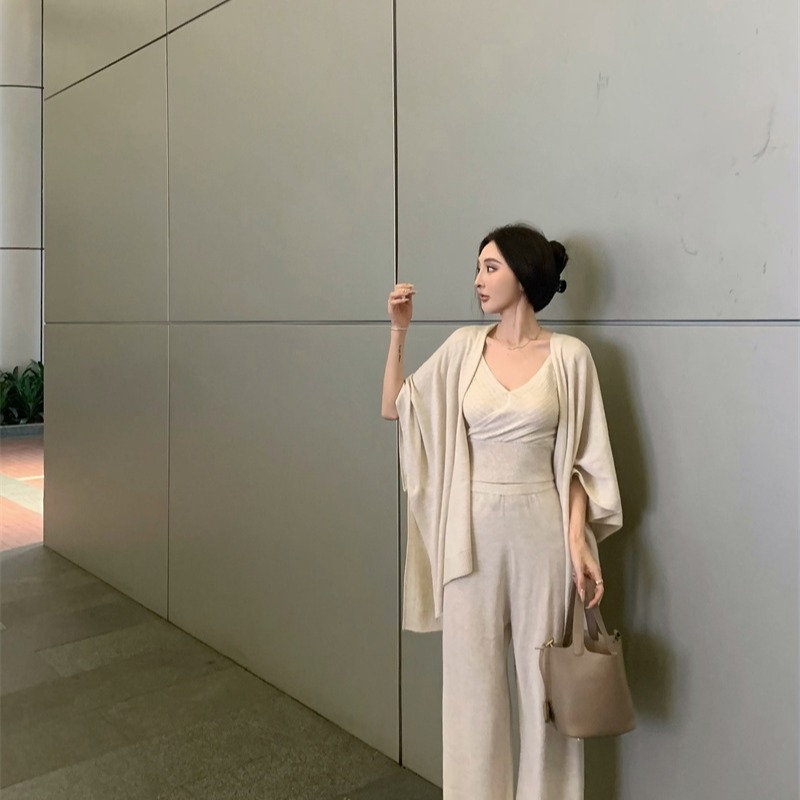 실사 정가 고급 센스 니트 슬립 드레스 바지 숄 세트 카디건 코트