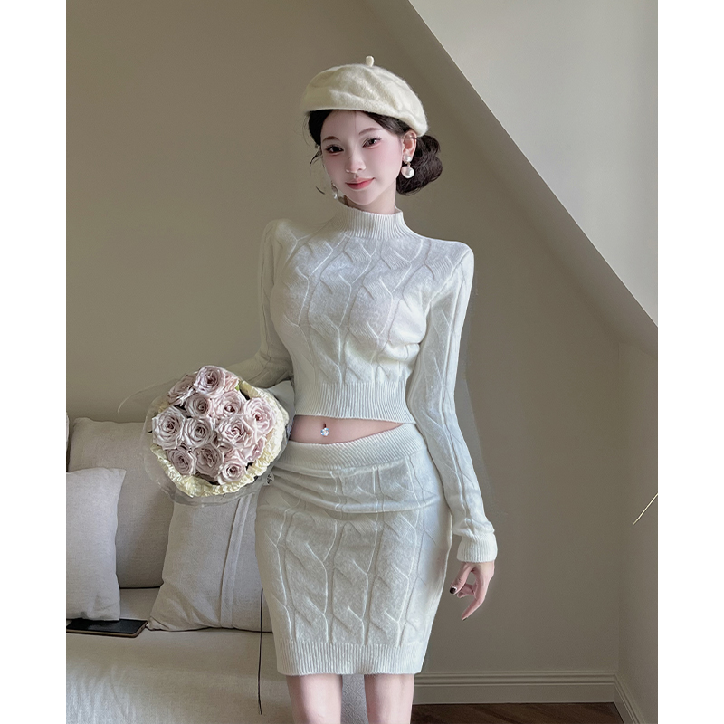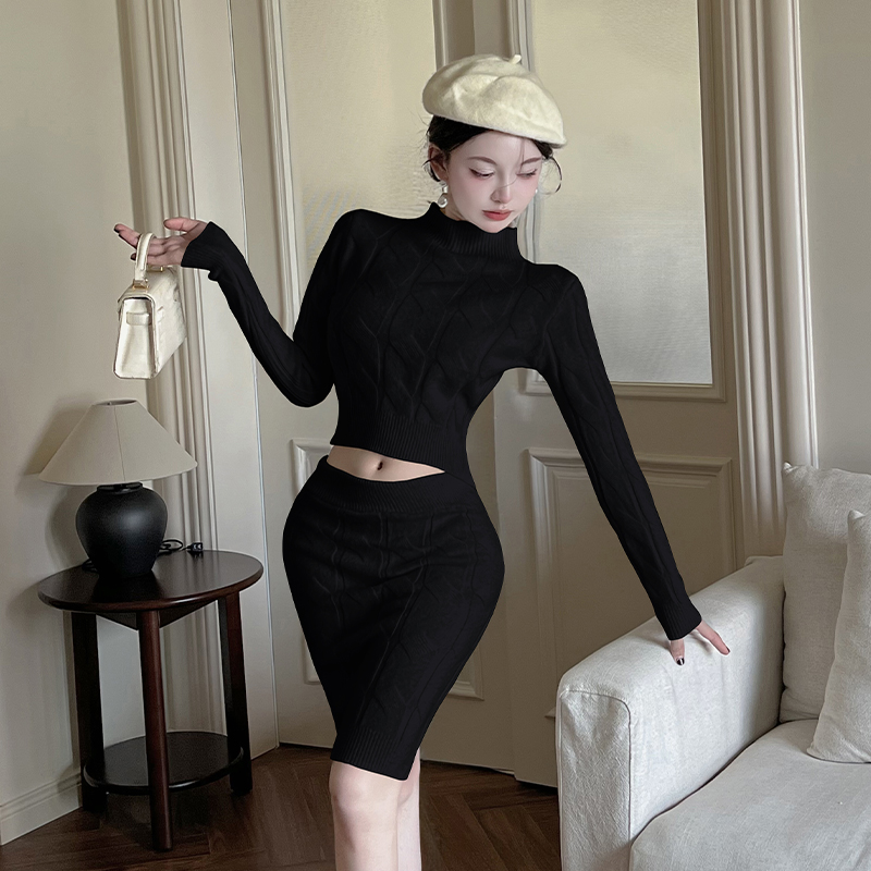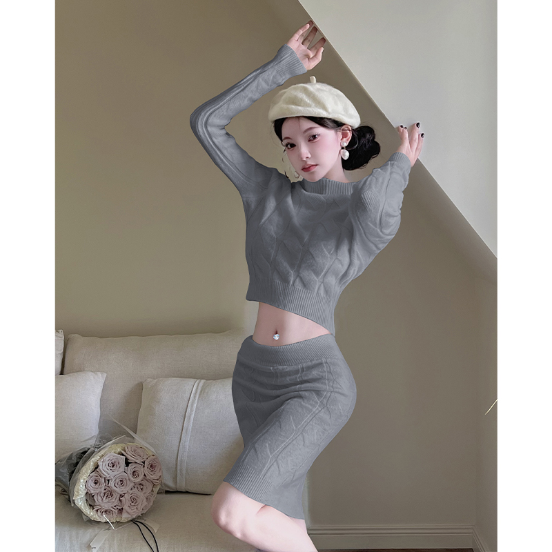 꽈배기 니트 스웨터 세트 드레스 여성 가을 겨울 새로운 몸매 가꾸기 하이웨이스트 타이트 스커트 미니 스커트 투피스 세트