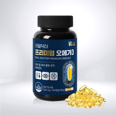 리얼닥터 캐나다산 프리미엄 오메가3 180캡슐 (6개월분) 대용량 혈행개선 눈건강 뼈건강 DSM 비타민D EPA DHA
