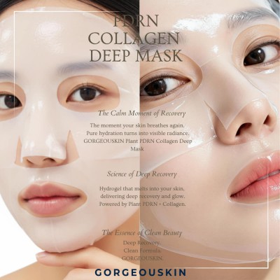PDRN과 콜라겐을 담은 하이드로겔 마스크로 피부에 깊은 보습과 탄력을 채워주는 고보습 콜라겐 딥 케어 팩.