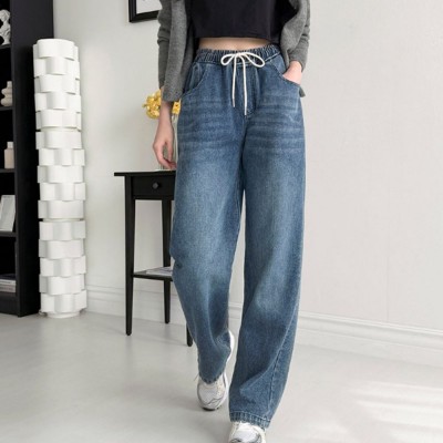 여성 청바지 넌스판 와이드 일자핏 팬츠 청바지 연청