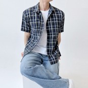데일리 남자 오버핏 반팔 체크 남방 셔츠 남성 반팔 티셔츠
