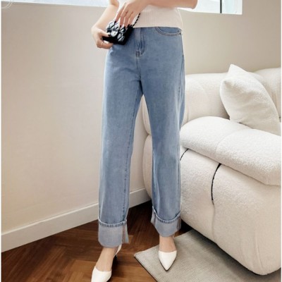 여성 청바지 넌스판 와이드 일자핏 팬츠 청바지 연청