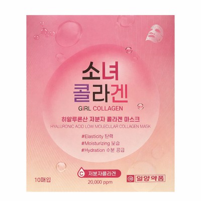 일양약품 소녀 콜라겐 히알루론산 저분자 콜라겐 마스크 25ml 주름 미백 진정 탄력 보습 수분 공급 마스크팩 10개입