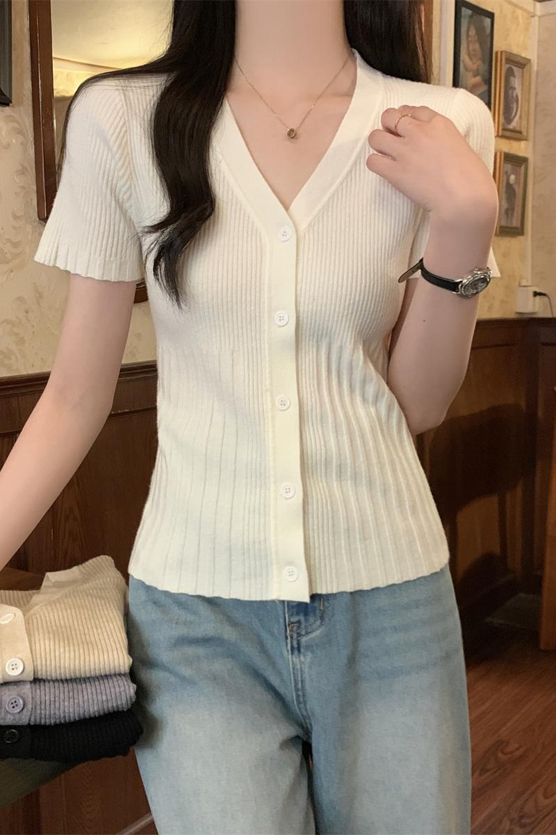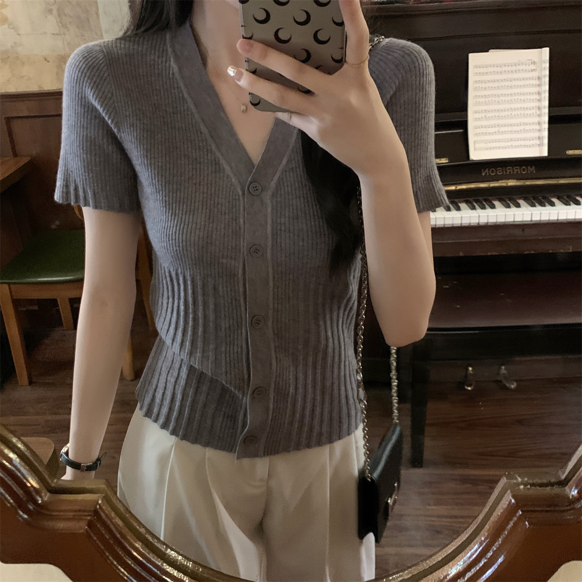 여름 한국어 버전 순수한 정사각형 넥 대비 레이스 스 플라이 싱 자카드 슬림 짧은 짧은 슬릿 티셔츠 탑