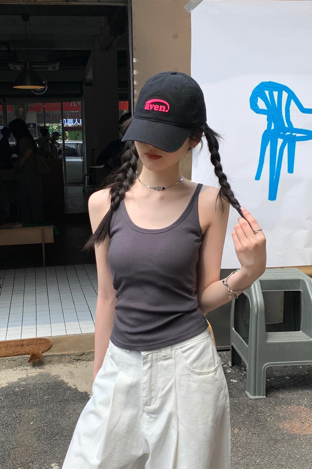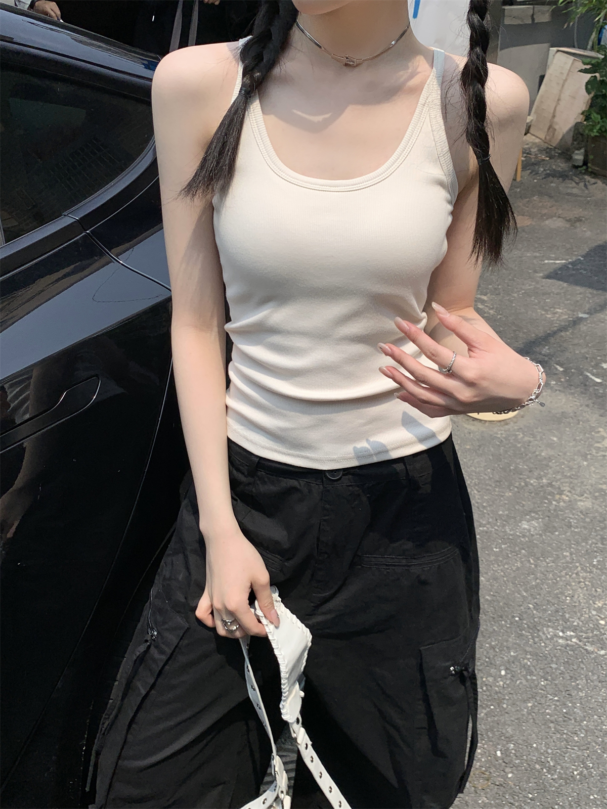 실제 사진 여름 여름 슬림 핏 스 플라이 싱 가짜 두 조각 달콤하고 매운 단색 다목적 티셔츠 조끼 여성을위한 탑